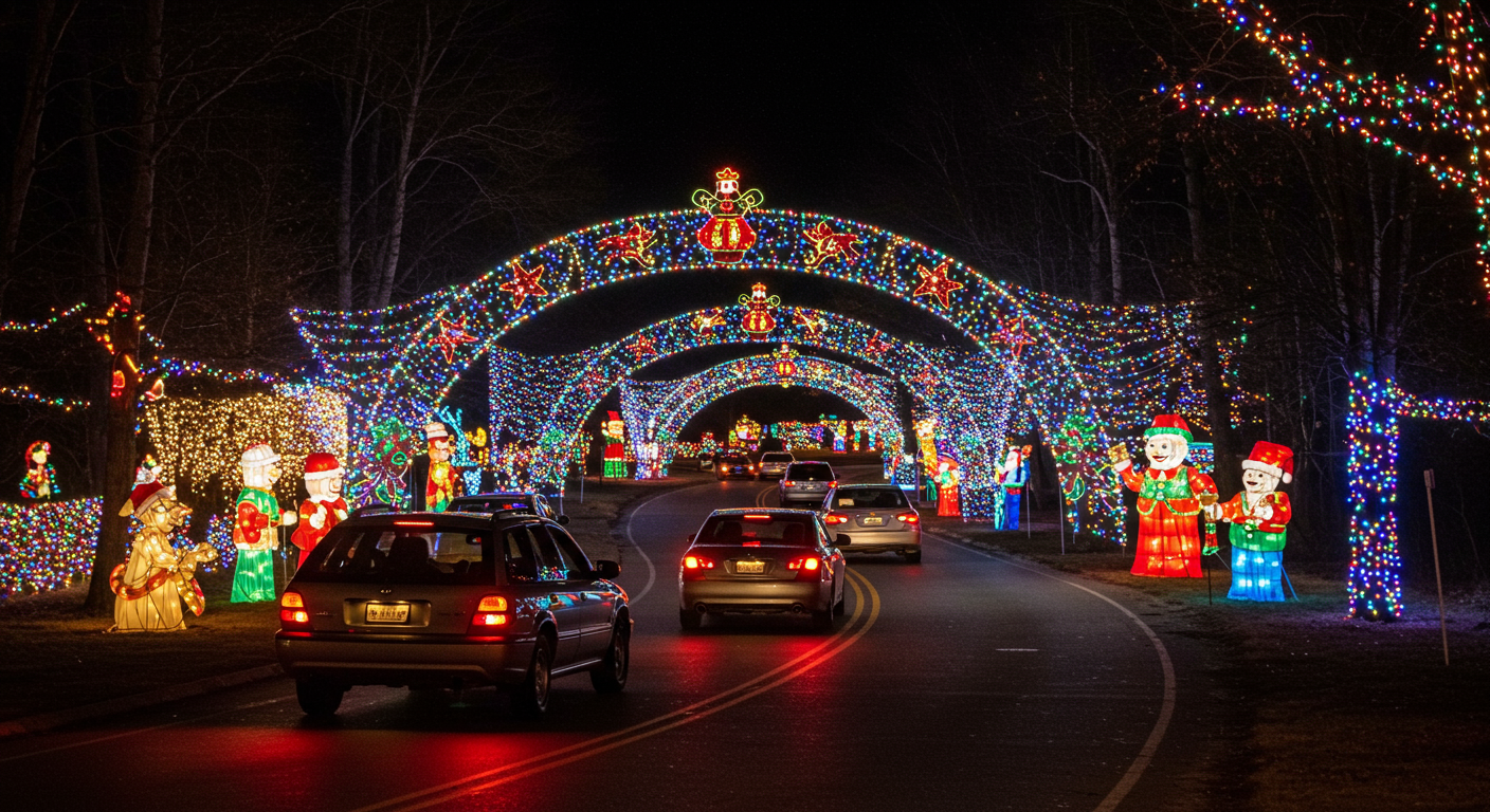 Located at 7700 Bull Run Drive, Centreville, VA 20121, The Bull Run Festival of Lights Drive-Thru is open in the evenings November 6 – January 10. Tickets are $20 online/ $25 on-site per car and $5 more expensive on peak days (Dec 12 – Dec 31). Stay warm in your car while you drive through 2.5 miles of sparkly holiday lights and animated displays!Holly’s Tacky Christmas Lights