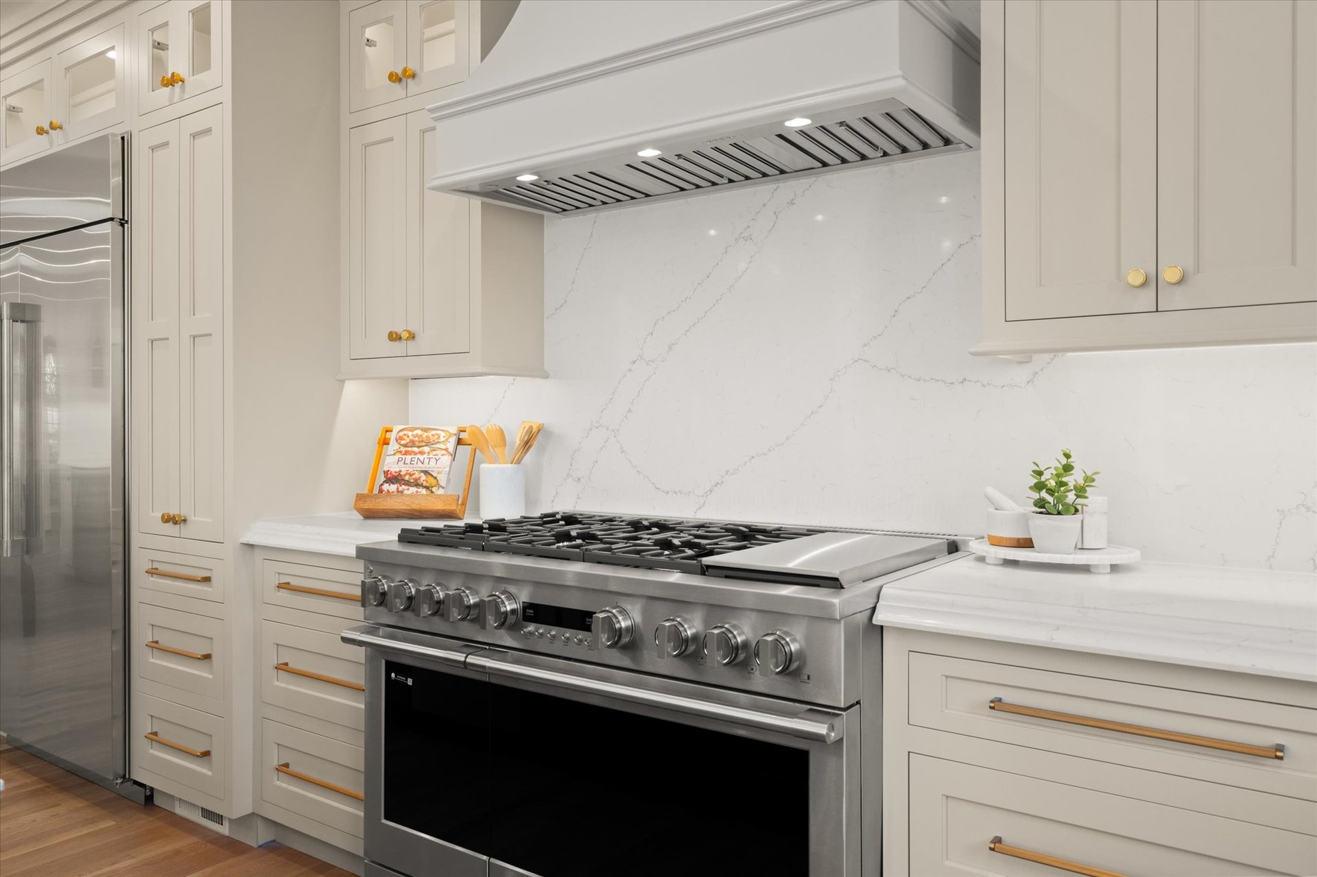 Natural, custom wood range hoods are stealing the spotlight. They add architectural interest and bring warmth back into the kitchen.