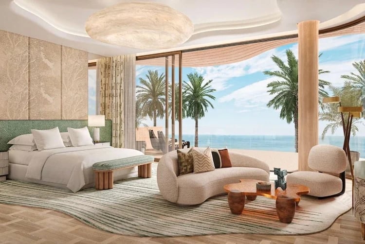 This seven-bedroom penthouse is the crown jewel of La Mer’s Asora Bay, the sole unit of its kind on the tenth floor. Featuring expansive interiors, stone, marble, and engineered wood finishes, and floor-to-ceiling windows framing Arabian Gulf views, the residence redefines super-prime living. Indoor spaces flow seamlessly from library and study to formal lounges and dining areas, while each bedroom boasts en suites, walk-in wardrobes, and marble floors. Outdoor features include an infinity pool, two jacuzzis, terraces, and access to a wellness spa, private club, gym, and rooftop deck—truly a showgirl’s dream retreat.