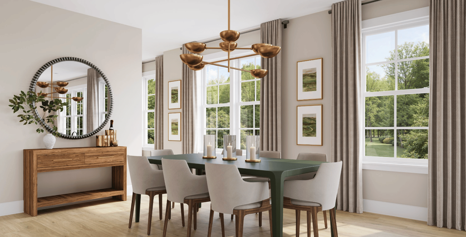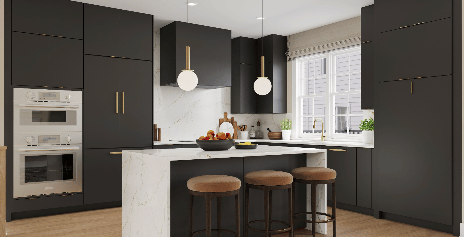The Dunmore is a spacious end townhome featuring a sophisticated chef's kitchen, distinctive finishes, 2-car garage, and eco-friendly all-electric design. An optional elevator, loft level with rooftop terrace, and entry-level multi-generational suite are also available.