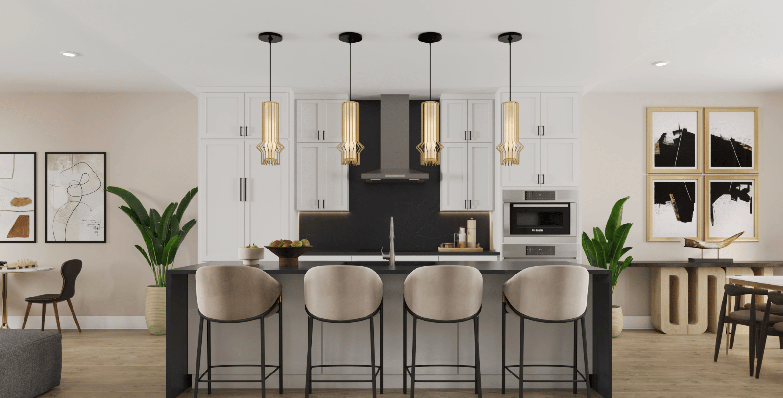 The Cypress with Elevator features a sophisticated kitchen, open floorplan with distinctive finishes, 2-car garage, eco-friendly all-electric design, and the convenience of a private elevator. An optional loft level with rooftop terrace and entry-level multi-generational suite are also available.