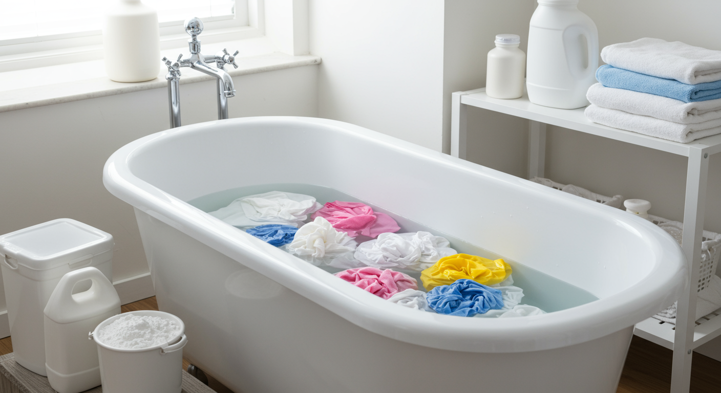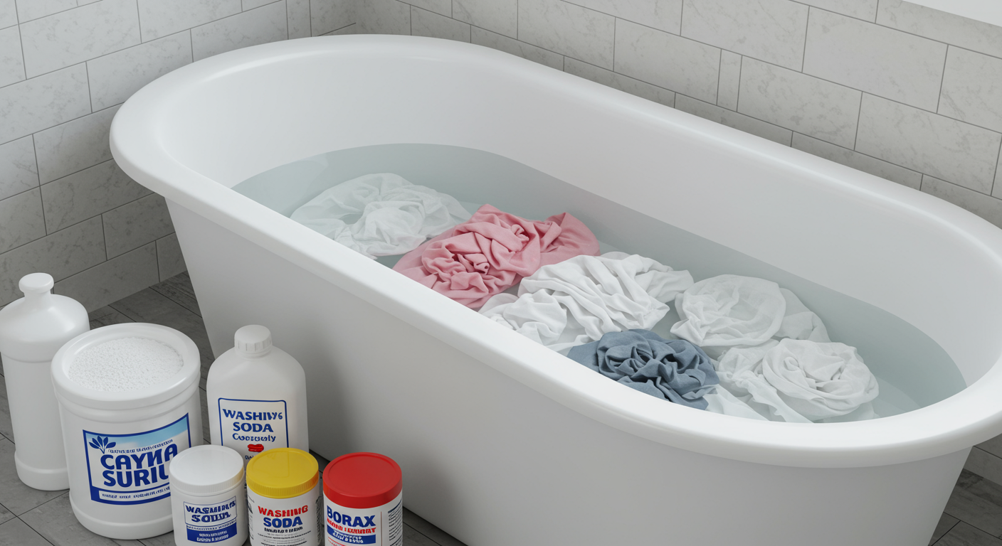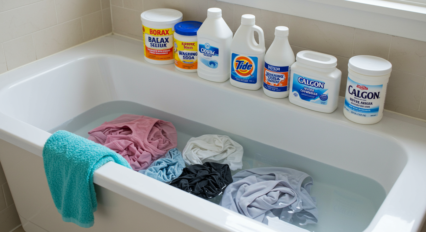 If you follow me on Instagram you’ve seen my recent Instagram stories about “laundry stripping” – a gross yet satisfying trend to revive laundry. The purpose of laundry stripping is to remove detergent residue, fabric softener, minerals from hard water, and body oils that have collected on your laundry over time. It involves four simple products: Borax, Tide Powder, Arm & Hammer Washing soda, and optional Calgon water softener. The process is this: soak clean laundry of like colors in a bathtub filled with hot water and the cleaning mixture. Stir every hour for four – six hours and the result is some of the most disgustingly satisfying brown water you will ever see. I stripped both mine and my husband’s workout gear, as well as our clean white towels, and was shocked every time.