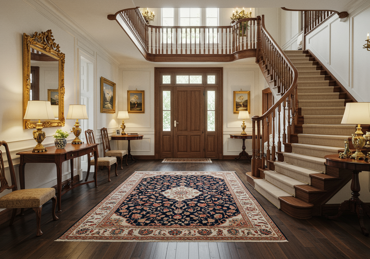 As visitors approach the estate, they are greeted by a striking sight: a Squirrel and Acorn statue, emblematic of the Lee family crest, introducing them to the grandeur that lies beyond. The expansive pea gravel parking court can accommodate up to 30 cars, with additional parking available outside the courtyard. Upon entering the estate, guests find themselves in a large reception hall, dominated by a grand staircase leading to the upper level. The true essence of Stratford House is immediately apparent.