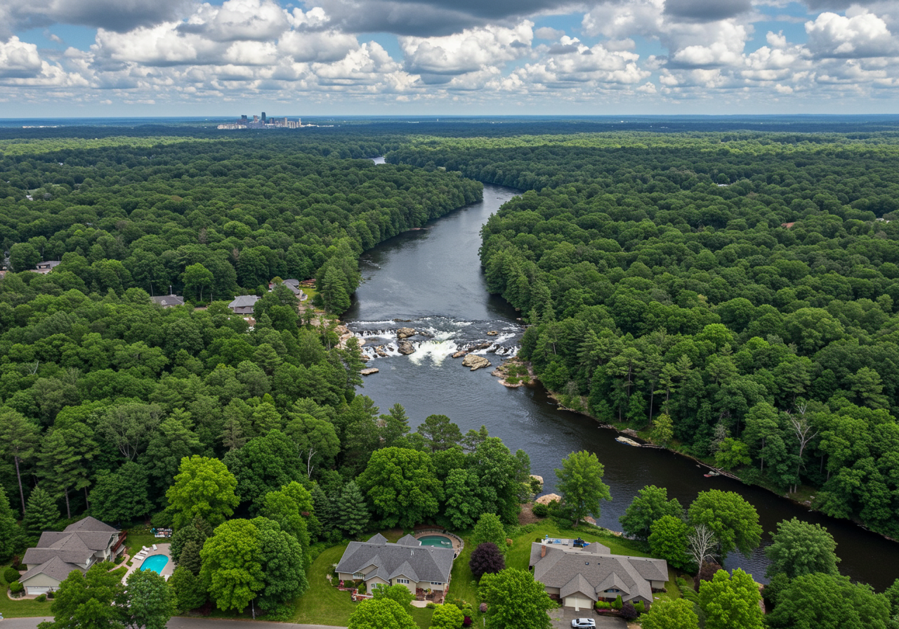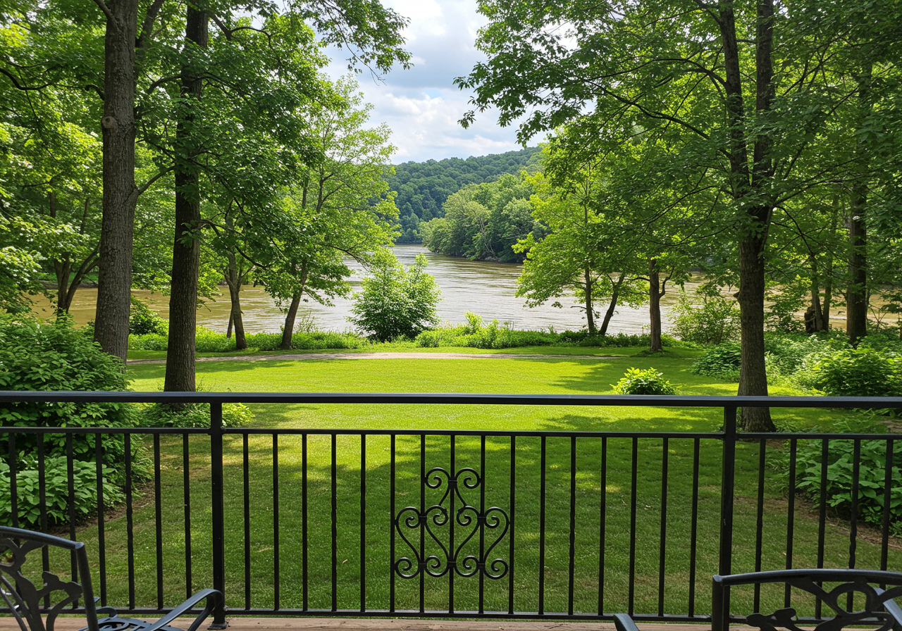 Outside, the terraced garden leads to a bluff overlooking the Potomac River, offering 360-degree views of the river. Adjacent to the garden, a large pool and terrace provide a private and serene retreat, perfect for relaxation and outdoor gatherings.