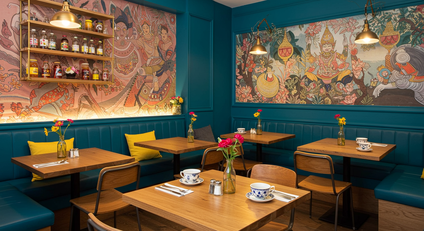 Sisters Thai, you’ll find beautiful blues, rich woods, creative murals, and three hundred and sixty degrees of Instagram-able desserts, drinks, and dishes.