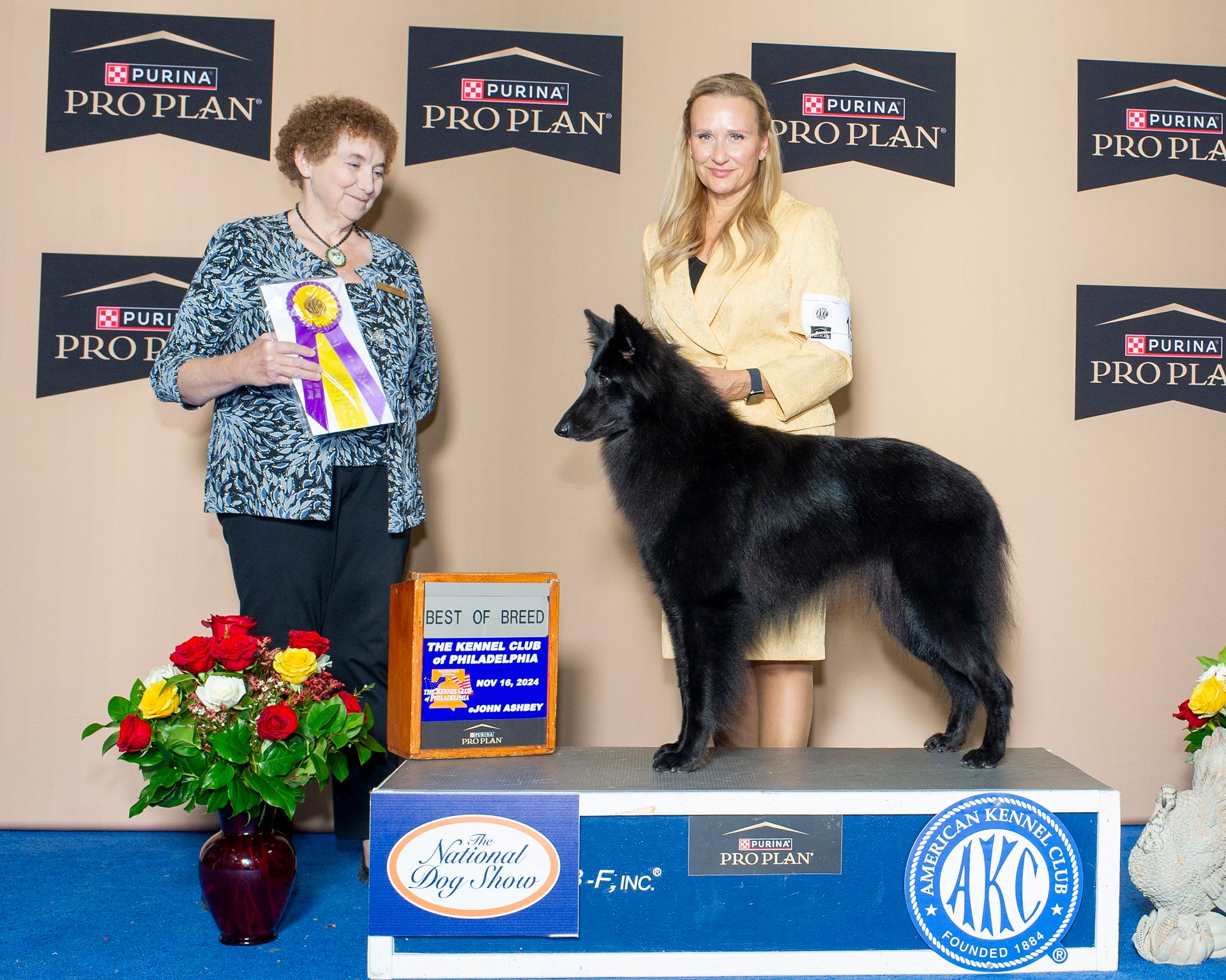 Born on July 17, 2022, Phoebe has compiled a list of accomplishments that feels almost impossible for her age. At just two years old, she won Best of Breed at the 2024 National Dog Show, advancing to group judging on national television on Thanksgiving Day. This was Mia’s first show of that scale, and the nerves were real on both ends of the leash.