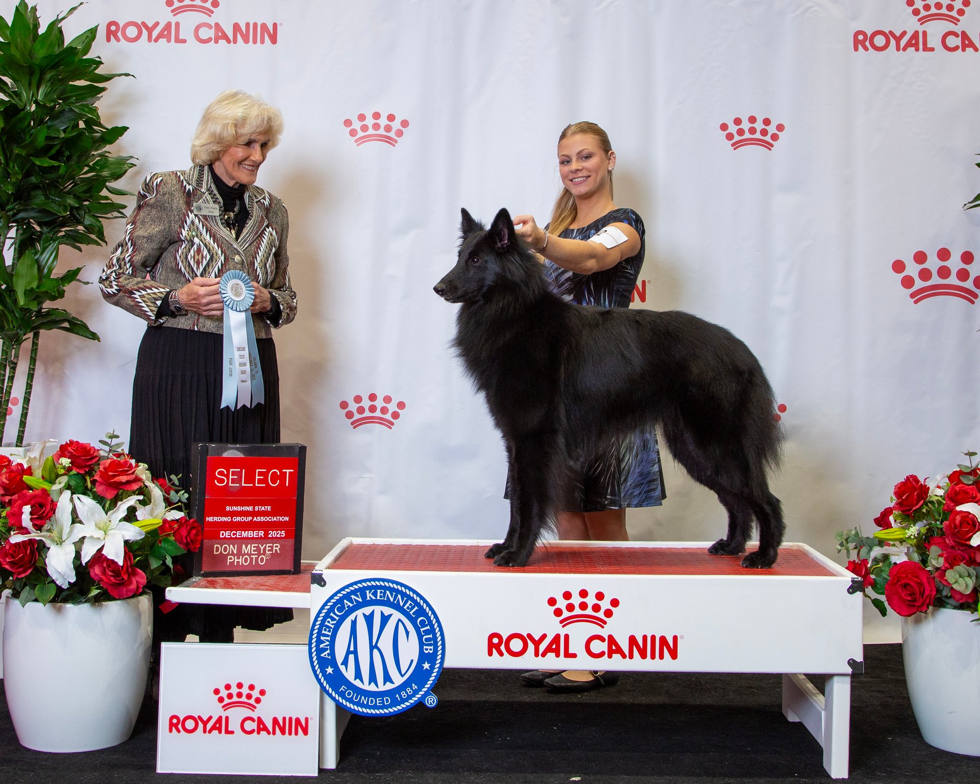 At the Herding Group Specialty Show, 2025 AKC National Championship in Orlando, she stood out immediately. The judge pulled Phoebe and the eventual winner at the same time, recognizing them as the top two before making the final call. Phoebe placed Select again, just one spot shy of the top.