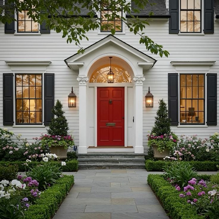 Experts point to red as one of the most layered front door colors. Historically tied to hospitality and good fortune, red doors have long been seen as welcoming and expressive. In early American tradition, a red front door also symbolized a major milestone: homeowners would paint their door red once the mortgage was fully paid off. It was a proud, visible signal of ownership, stability, and accomplishment. Today, choosing red is often less about tradition and more about personality. If it makes you smile or feel a little fearless, that’s exactly the point. Expert takeaway: Energetic, expressive, and inviting