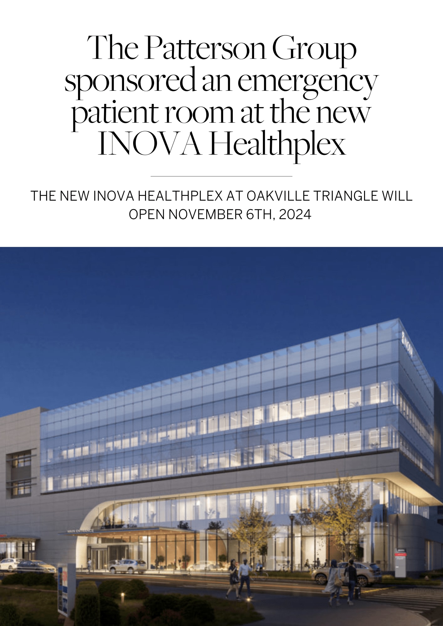 The Patterson Group Is The Sponsor of Emergency Patient Room #2 at The New INOVA Healthcomplex