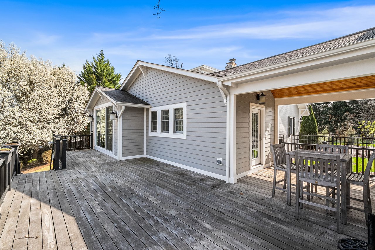 The home spans nearly 4,300 finished square feet across three thoughtfully designed levels, offering three to four bedrooms, a private office, three full baths, and one half bath. The primary suite is conveniently located on the main level, providing ease of living and a seamless connection to the home’s outdoor spaces.
