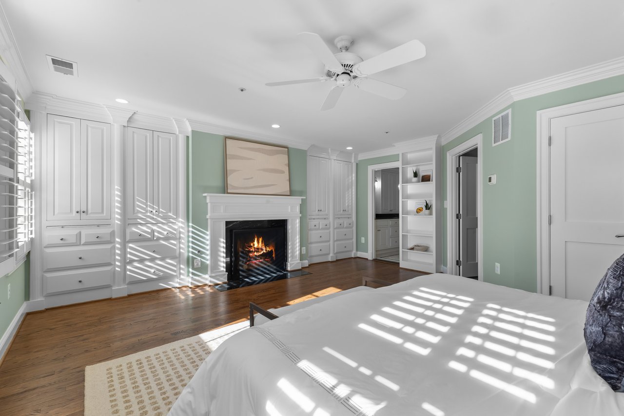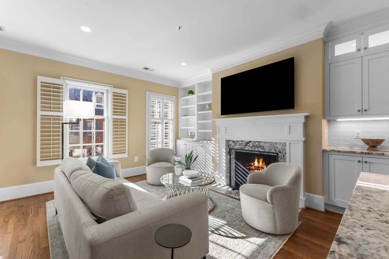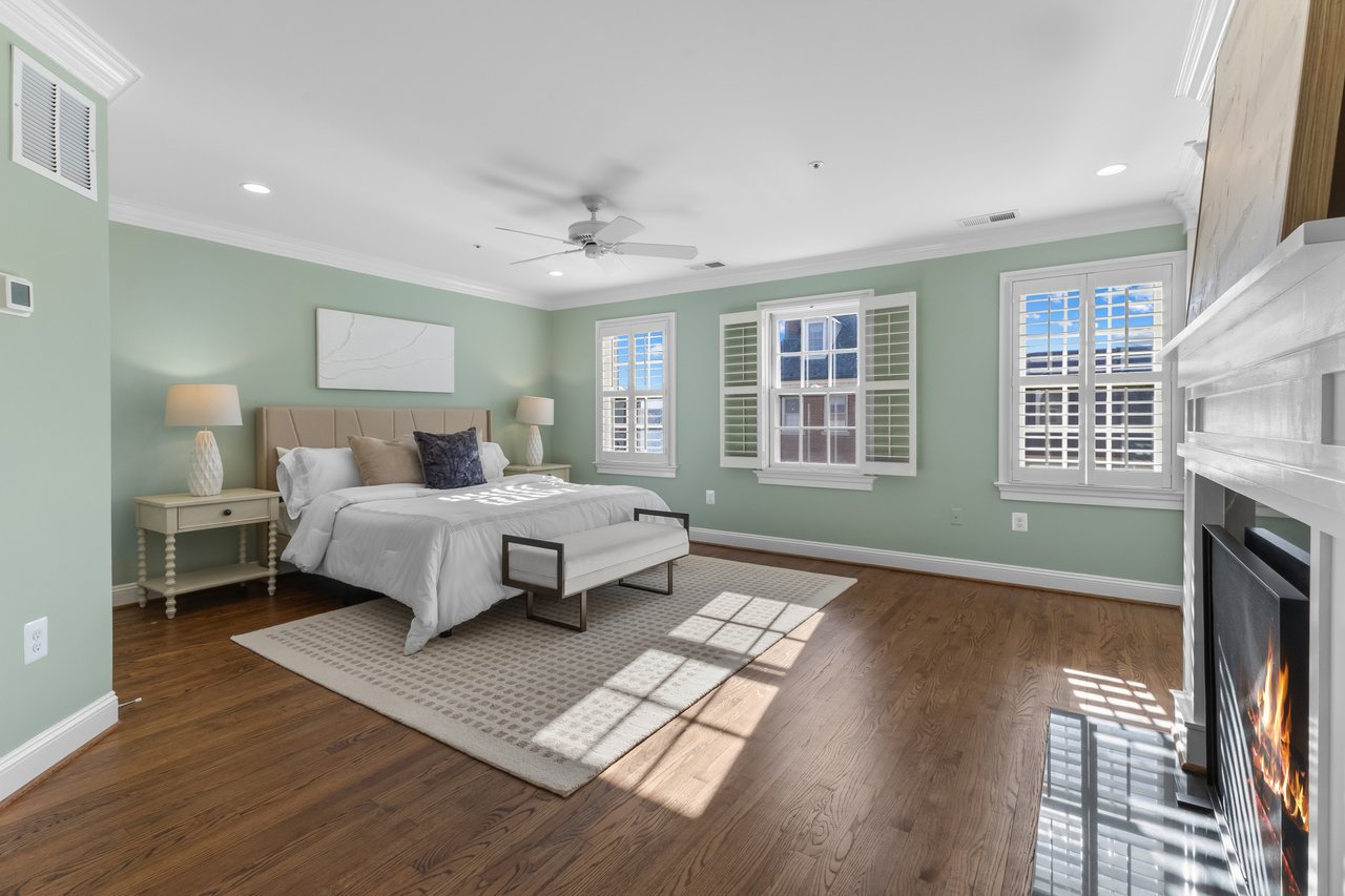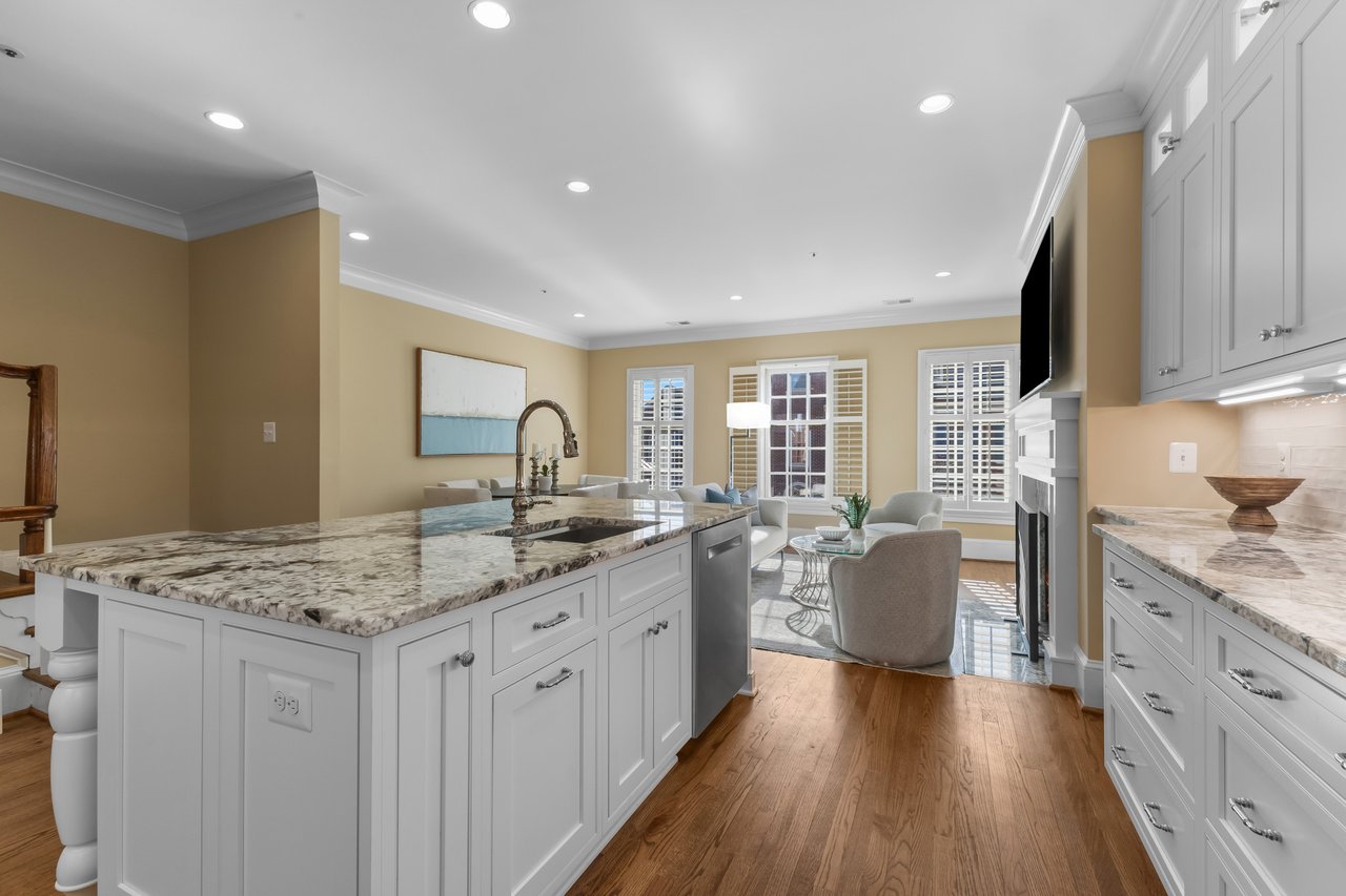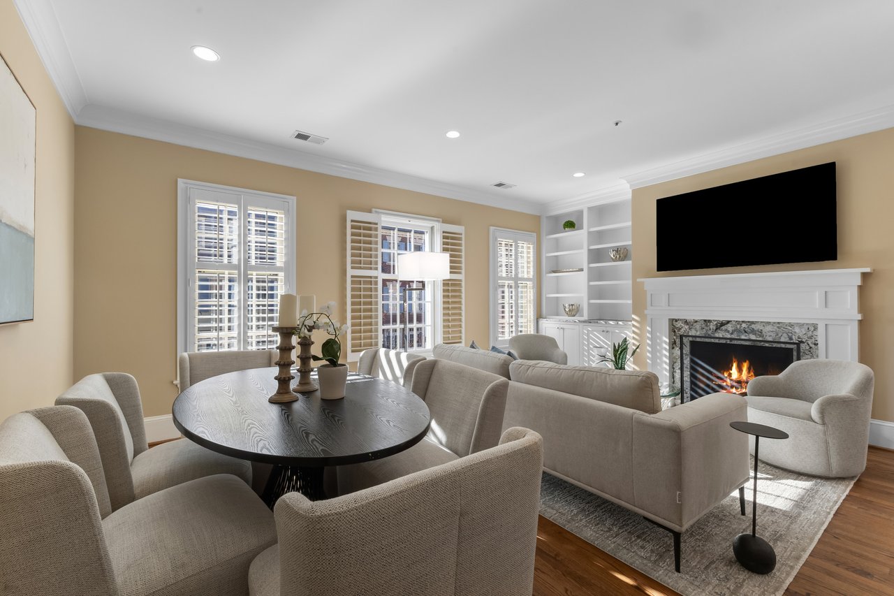 The residence enjoys a prized southeast exposure, filling the interiors with natural light and offering serene views of the Potomac River from the kitchen and bedrooms. The community itself overlooks the Potomac and boardwalk, placing riverfront walks and iconic vistas just beyond your door. High ceilings and custom millwork and doors further elevate the sense of scale, light, and sophistication throughout.