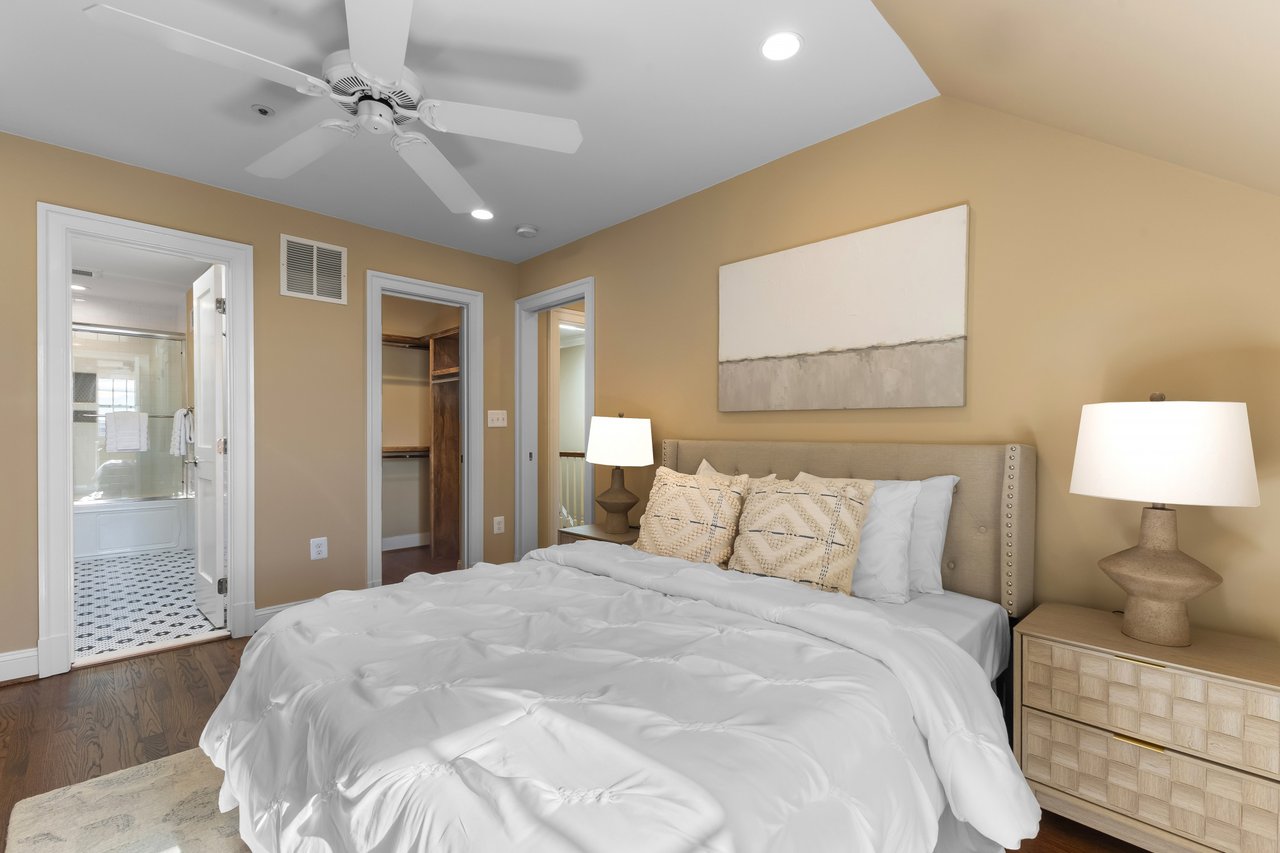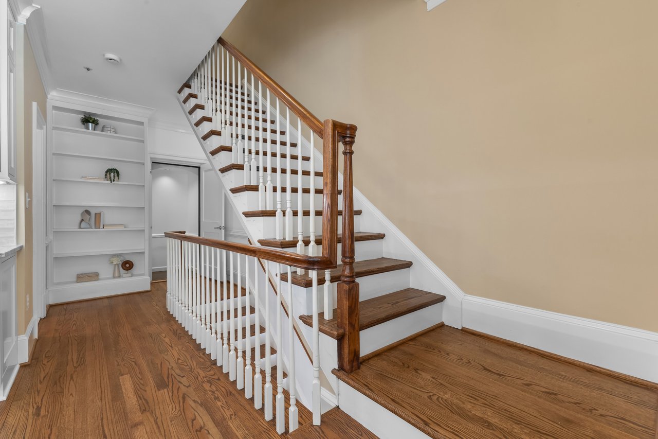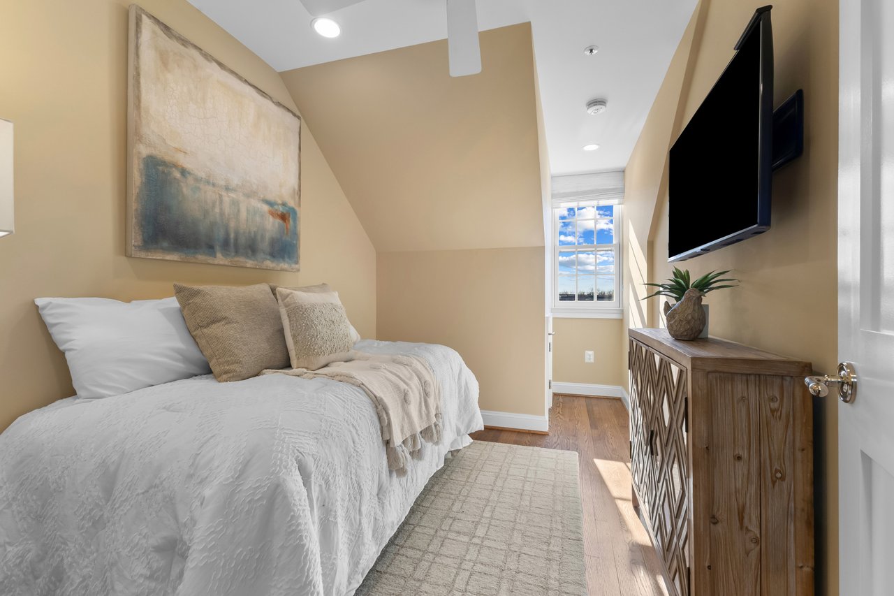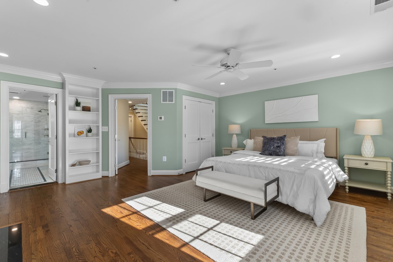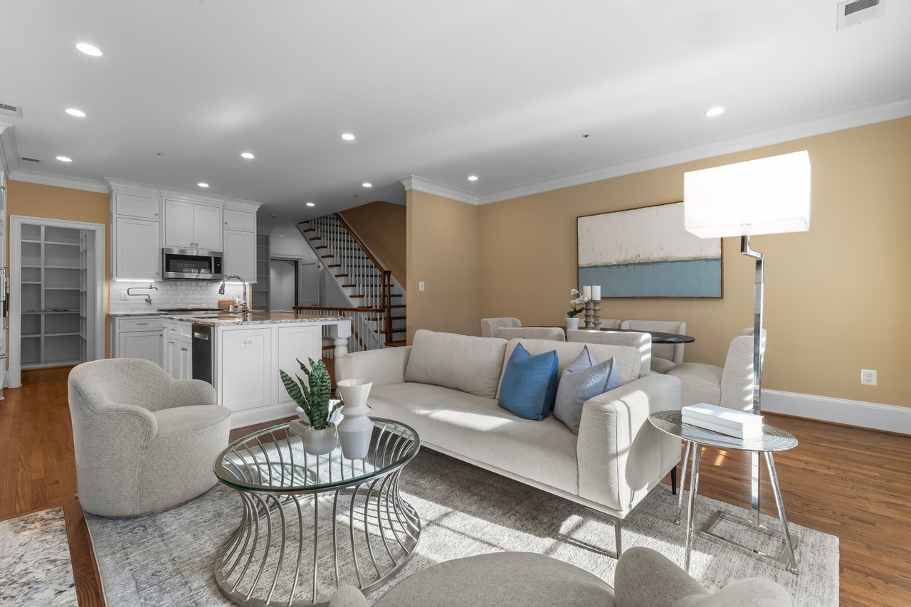 The residence enjoys a prized southeast exposure, filling the interiors with natural light and offering serene views of the Potomac River from the kitchen and bedrooms. The community itself overlooks the Potomac and boardwalk, placing riverfront walks and iconic vistas just beyond your door. High ceilings and custom millwork and doors further elevate the sense of scale, light, and sophistication throughout.