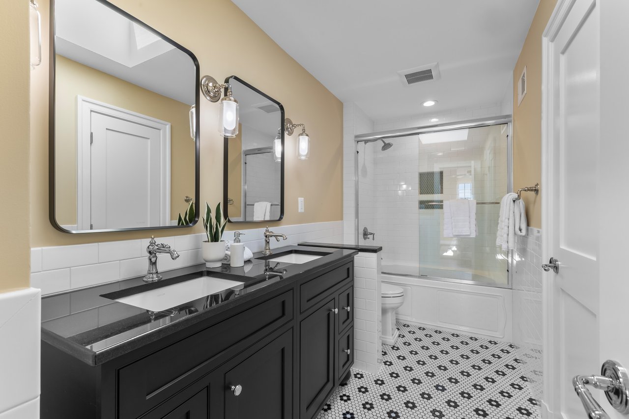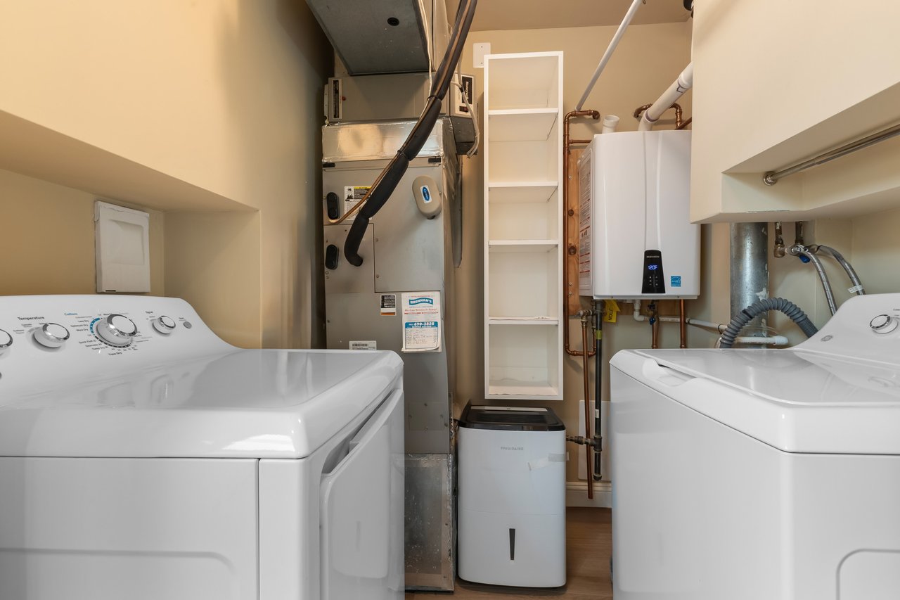 The primary suite is a luxurious retreat with heated bath floors, Toto fixtures/bidet, and custom closets. Additional enhancements include two new skylights and roof, a renovated laundry room, tankless hot water heater, and a walk-in cedar closet.