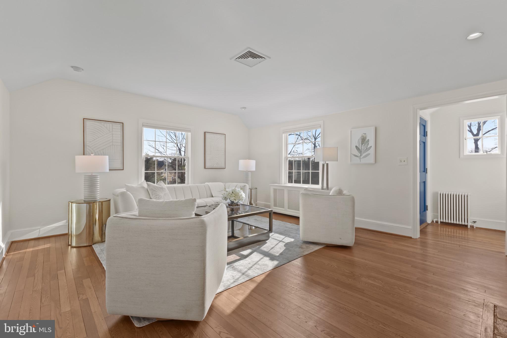 Recent comprehensive renovations include three new HVAC systems, a hot water heater, and a fully finished basement featuring a mudroom, laundry room, and full bathroom. A spiral staircase was replaced with a traditional staircase enhancing flow and functionality, while the enclosed crawl space adds valuable storage.