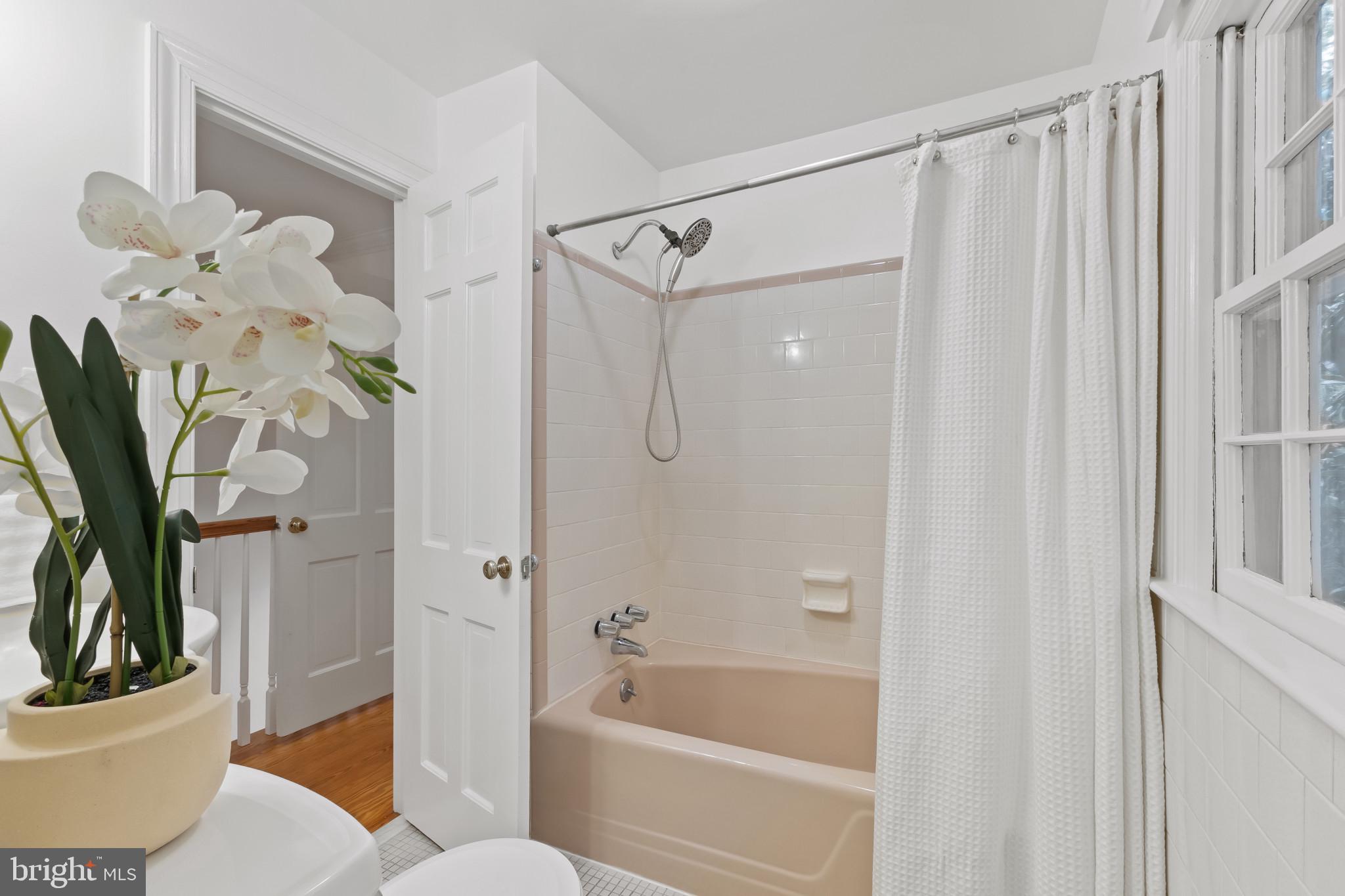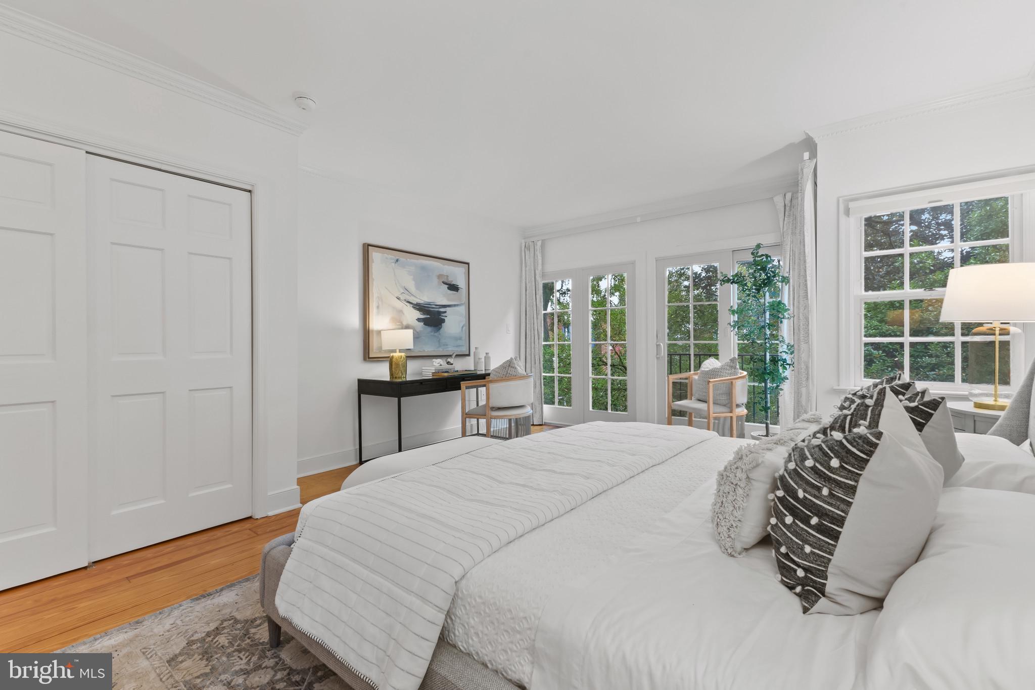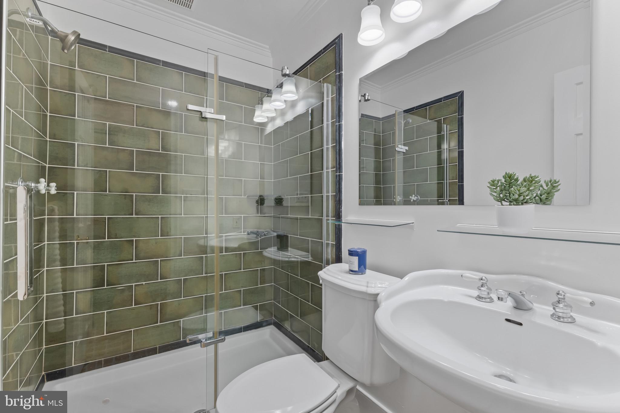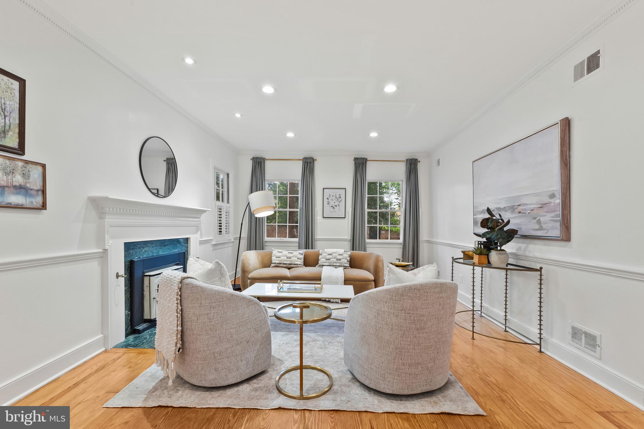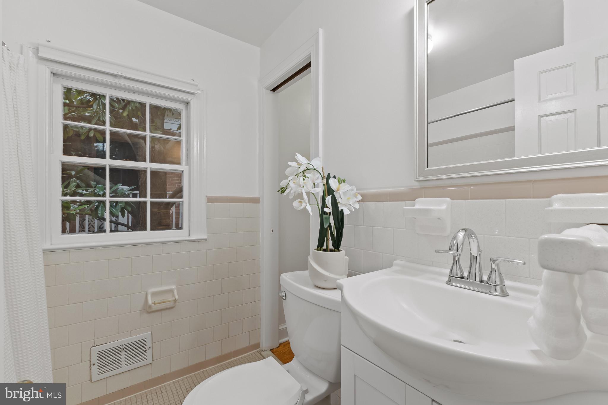 A semi-detached property on a tree-lined street in highly coveted SE quadrant of Historic Old Town. A private gated entrance welcomes you to a brick terrace and lovely outdoor space with mature trees. This historic 1850s home exudes charm at every turn, original wide-pine flooring, hand-carved fireplace mantel, 2 large bedrooms both with ensuite bathrooms, classic dental moldings, and a deep patio with lush garden. A side entrance allows for an expansive living room with high ceilings and great windows and light. Beautifully updated kitchen features eat-in peninsula, quartz counters, designer backsplash tile, and a custom built-in pantry. A rare half bath and a deep laundry closet on the main level. An upstairs master suite expansion with French Doors overlooks the brick patio canopied by mature trees. Enjoy gorgeous tree-filled views from every window. Walk out the door and be immersed in all that Old Town has to offer., restaurants, shops and the waterfront are waiting to be discovered! Since purchasing the owner has replaced 5 Andersen French Doors, added a custom built-in pantry in the kitchen, built out a custom closet system in the primary bedroom, painted the interior and exterior top to bottom, replaced GE Washer and Dryer, resealed metal roof, added a new wood patio fence.