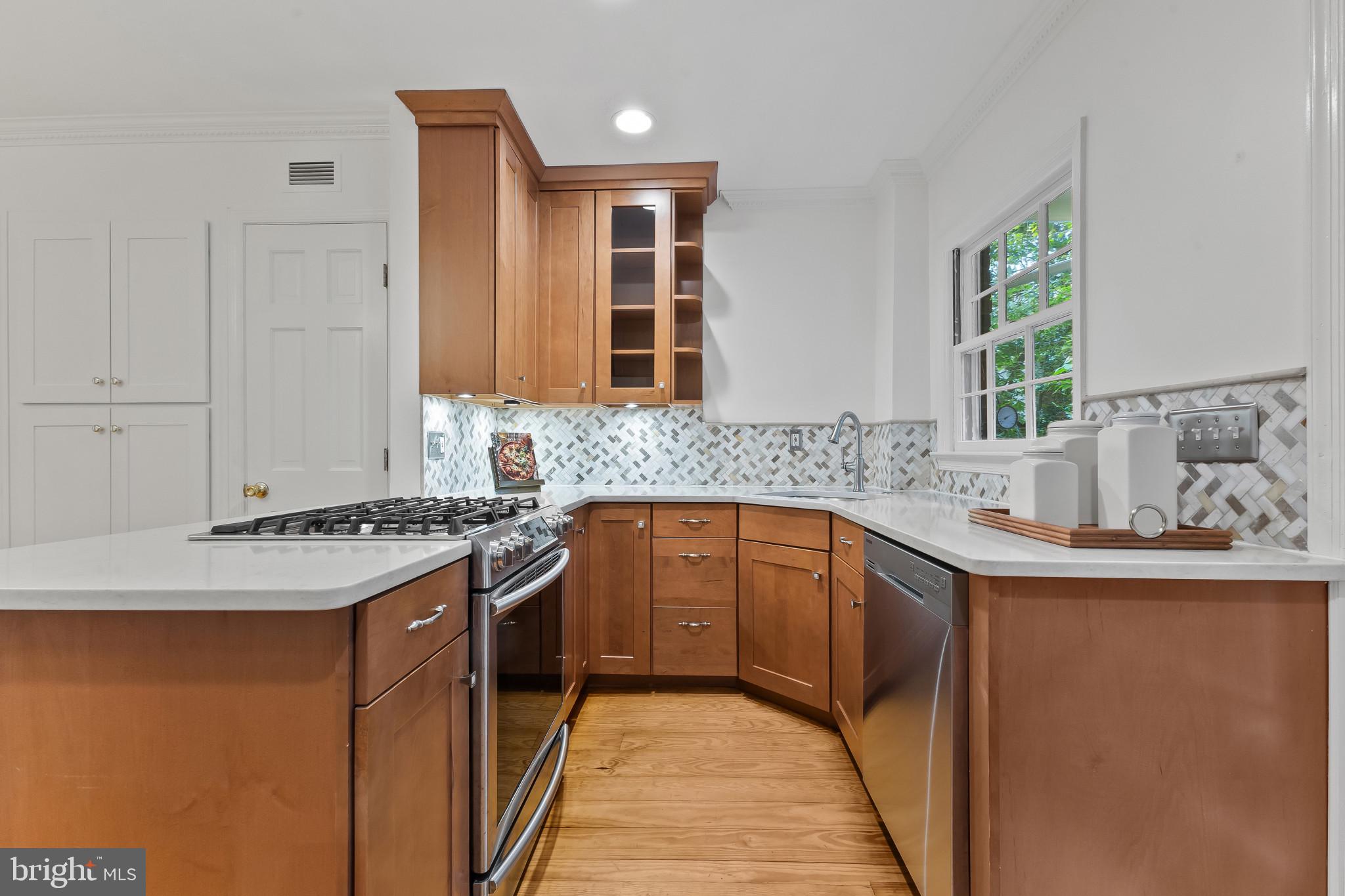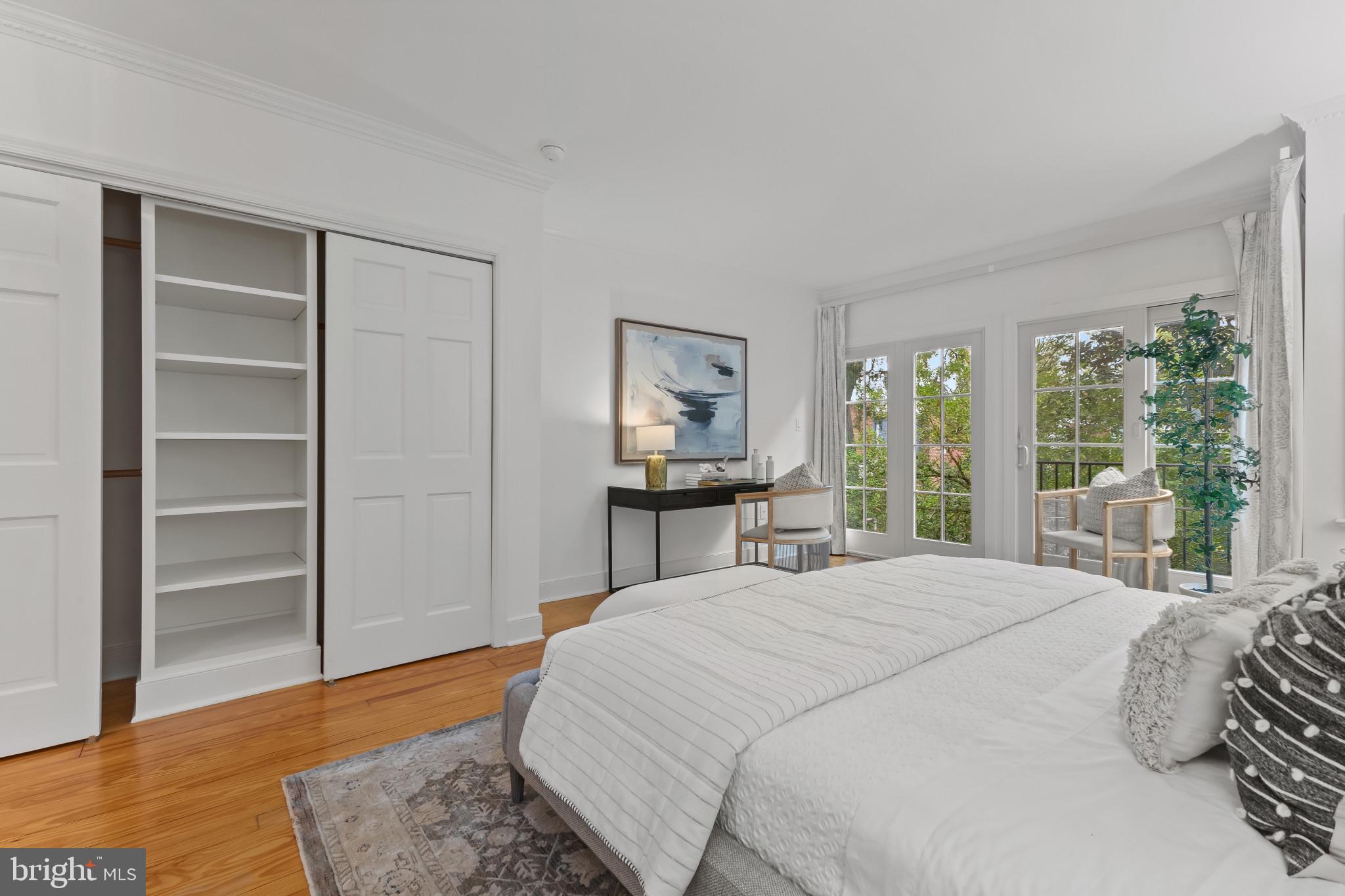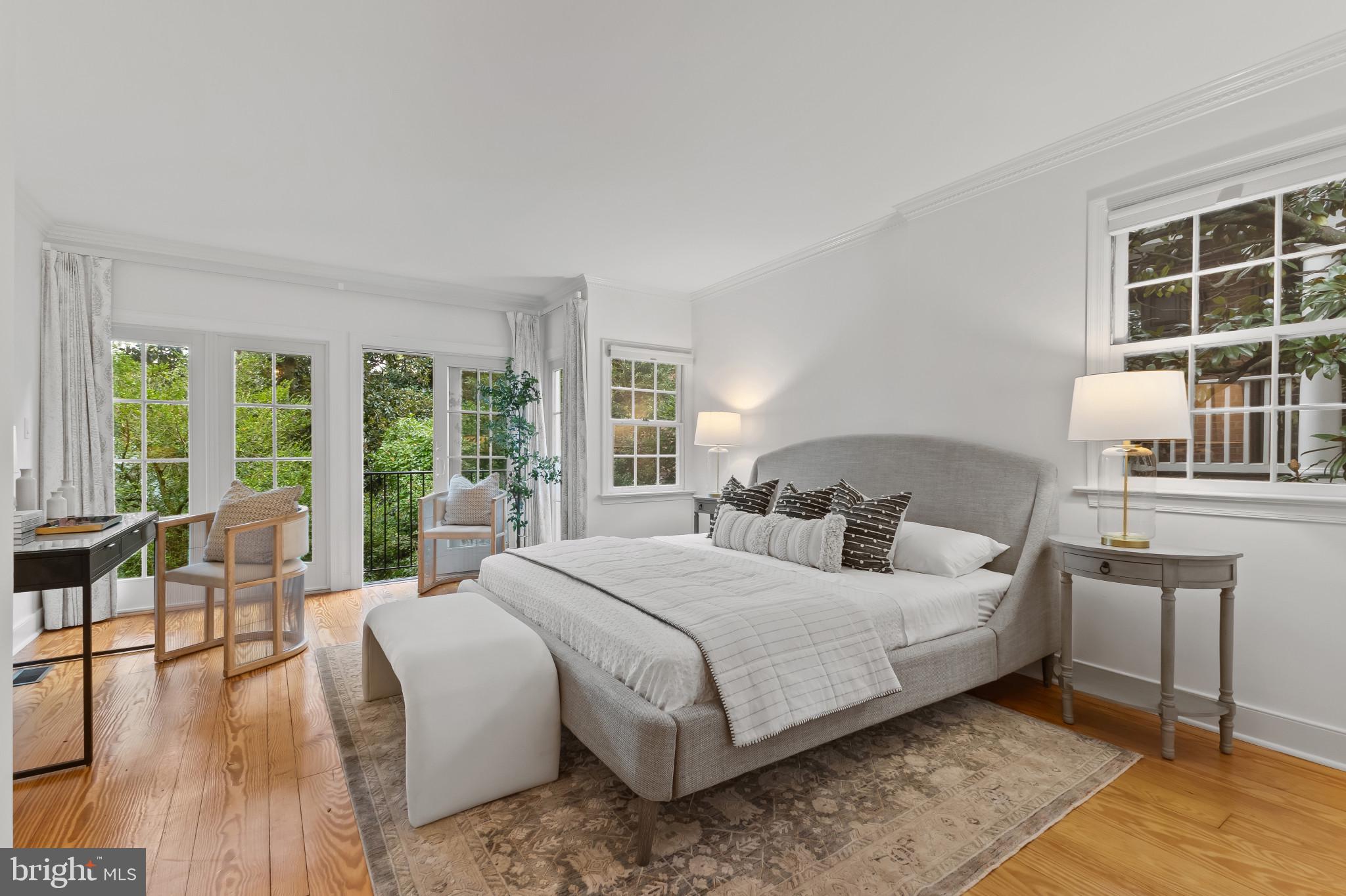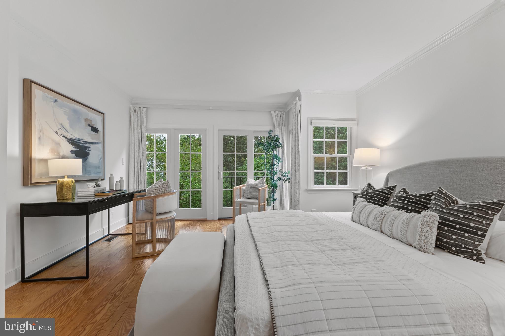 A semi-detached property on a tree-lined street in highly coveted SE quadrant of Historic Old Town. A private gated entrance welcomes you to a brick terrace and lovely outdoor space with mature trees. This historic 1850s home exudes charm at every turn, original wide-pine flooring, hand-carved fireplace mantel, 2 large bedrooms both with ensuite bathrooms, classic dental moldings, and a deep patio with lush garden. A side entrance allows for an expansive living room with high ceilings and great windows and light. Beautifully updated kitchen features eat-in peninsula, quartz counters, designer backsplash tile, and a custom built-in pantry. A rare half bath and a deep laundry closet on the main level. An upstairs master suite expansion with French Doors overlooks the brick patio canopied by mature trees. Enjoy gorgeous tree-filled views from every window. Walk out the door and be immersed in all that Old Town has to offer., restaurants, shops and the waterfront are waiting to be discovered! Since purchasing the owner has replaced 5 Andersen French Doors, added a custom built-in pantry in the kitchen, built out a custom closet system in the primary bedroom, painted the interior and exterior top to bottom, replaced GE Washer and Dryer, resealed metal roof, added a new wood patio fence.