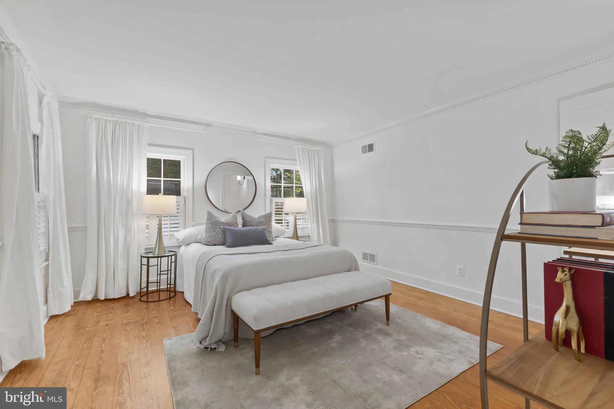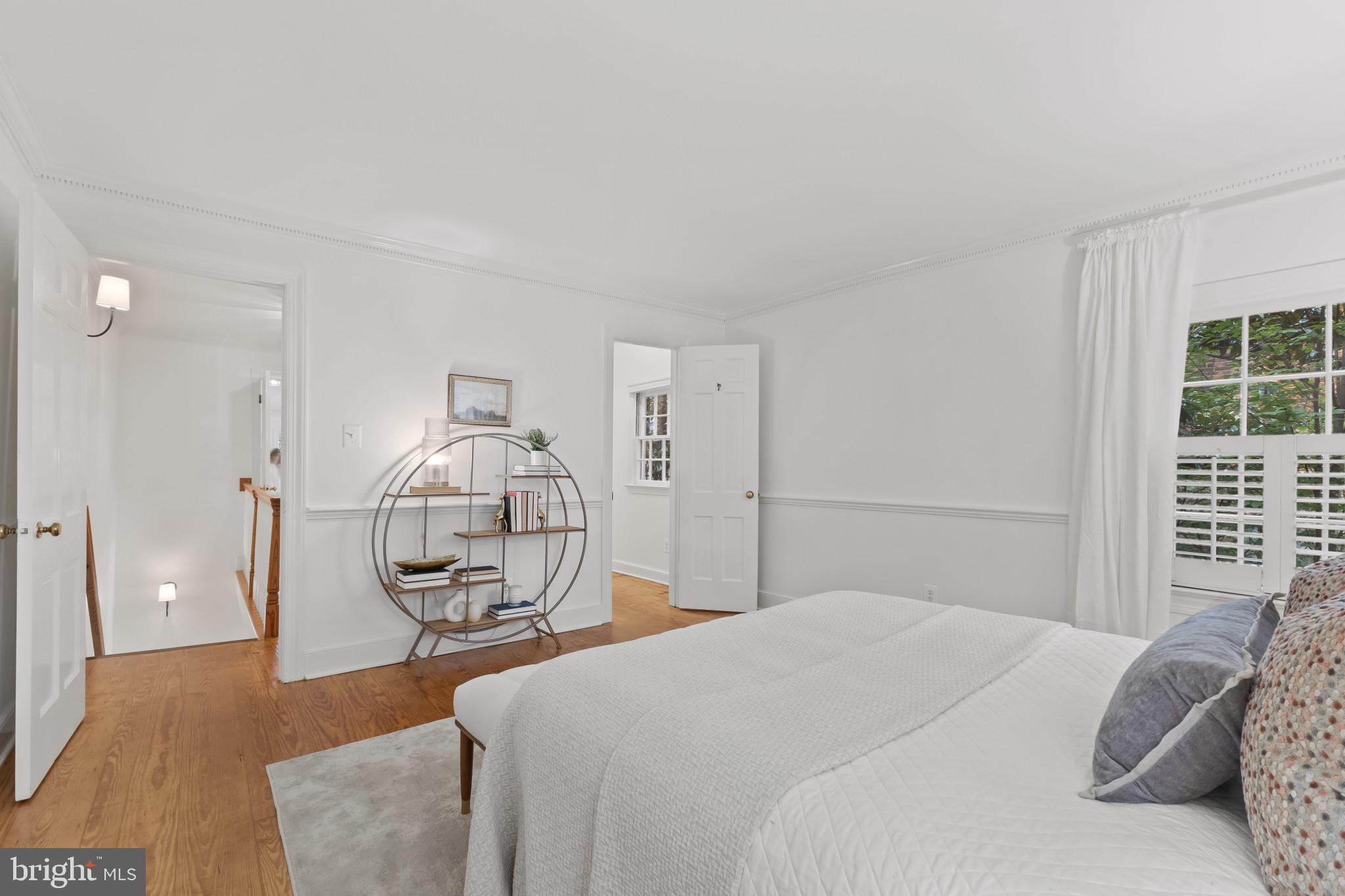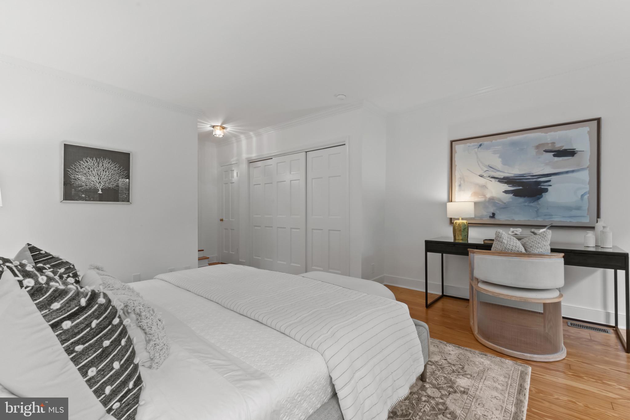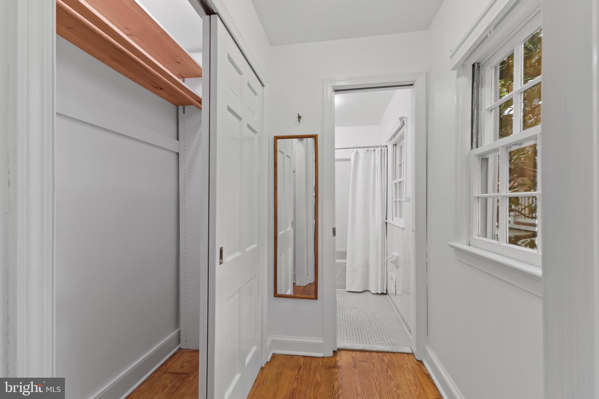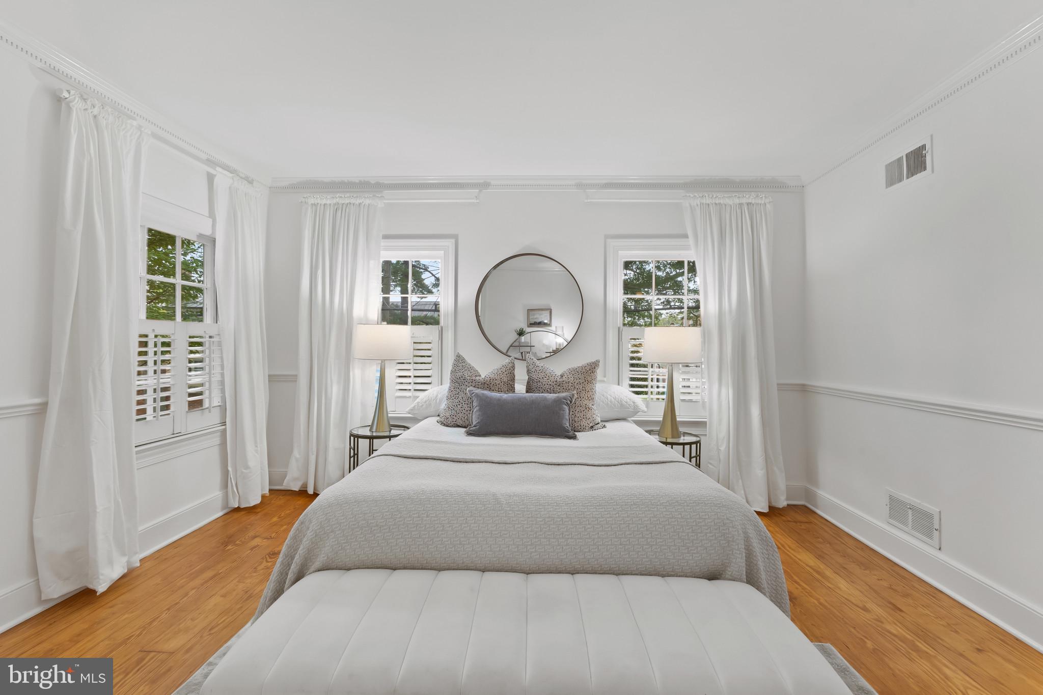 A semi-detached property on a tree-lined street in highly coveted SE quadrant of Historic Old Town. A private gated entrance welcomes you to a brick terrace and lovely outdoor space with mature trees. This historic 1850s home exudes charm at every turn, original wide-pine flooring, hand-carved fireplace mantel, 2 large bedrooms both with ensuite bathrooms, classic dental moldings, and a deep patio with lush garden. A side entrance allows for an expansive living room with high ceilings and great windows and light. Beautifully updated kitchen features eat-in peninsula, quartz counters, designer backsplash tile, and a custom built-in pantry. A rare half bath and a deep laundry closet on the main level. An upstairs master suite expansion with French Doors overlooks the brick patio canopied by mature trees. Enjoy gorgeous tree-filled views from every window. Walk out the door and be immersed in all that Old Town has to offer., restaurants, shops and the waterfront are waiting to be discovered! Since purchasing the owner has replaced 5 Andersen French Doors, added a custom built-in pantry in the kitchen, built out a custom closet system in the primary bedroom, painted the interior and exterior top to bottom, replaced GE Washer and Dryer, resealed metal roof, added a new wood patio fence.
