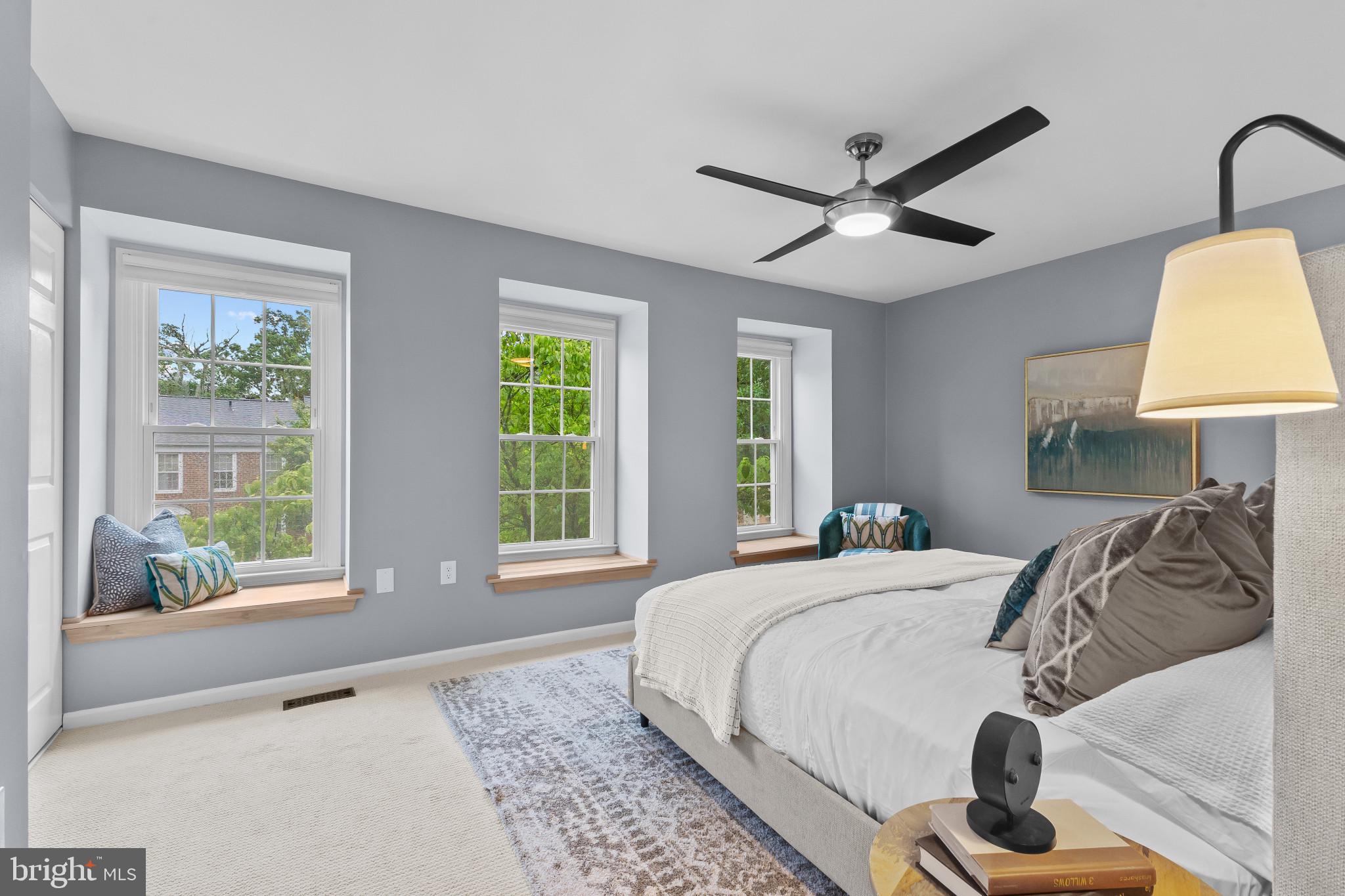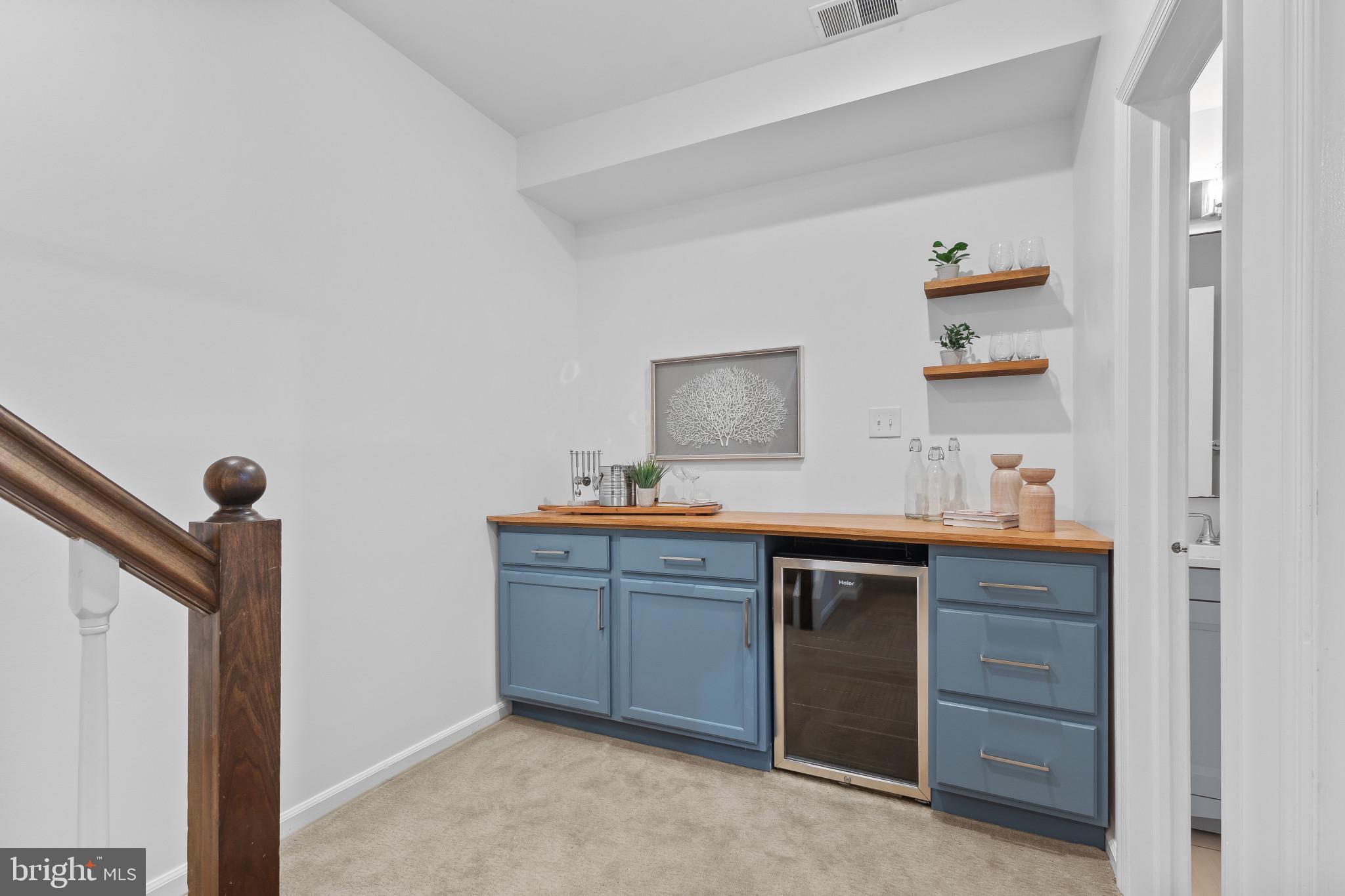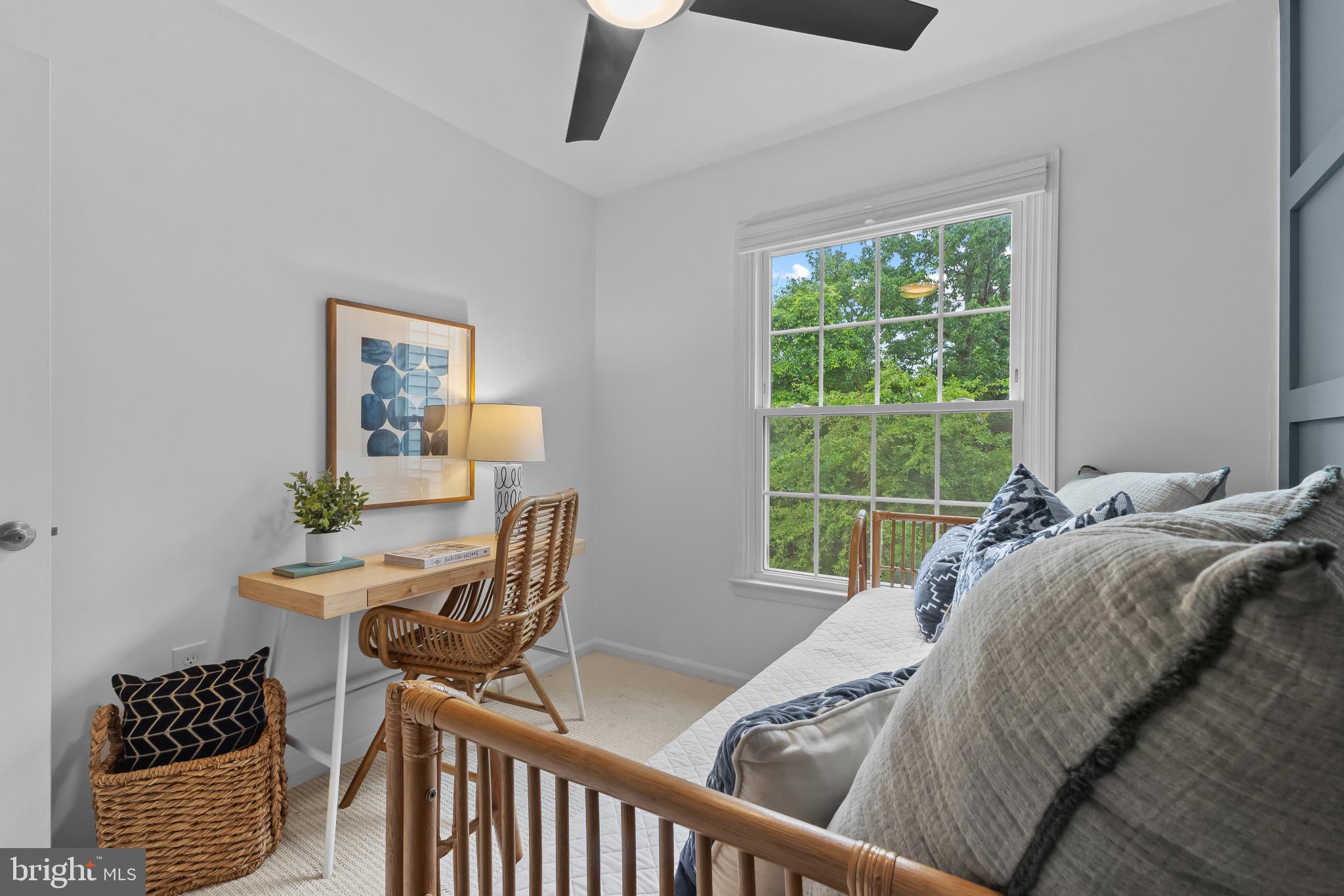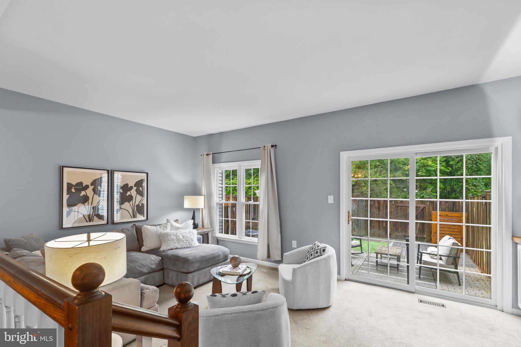 Welcome to 4328 Marjoram Ct, an updated three-level townhome in Alexandria's sought-after Loftridge community. Surrounded by parkland yet just minutes from Kingstowne shopping and dining, with easy access to I-495, Old Town, Washington, DC, and only 2.5 miles to Huntington Metro, this home offers the ideal blend of privacy and convenience. This thoughtfully upgraded home features 3 bedrooms and 3 full baths. All bathrooms were remodeled in 2020 with new tile, vanities, and fixtures. The kitchen showcases quartz countertops, updated appliances, and modern lighting. Additional highlights include a custom built-in media unit in the living room, a lower-level entertainment bar with beverage fridge, and detailed millwork and accent walls in the bedrooms. The main level includes a dedicated dining area that steps down into a cozy living room with direct access to the fenced backyard patio. The outdoor space features low-maintenance turf and backs to trees, creating a private, serene retreat. Upstairs, the primary suite offers window seating, an en-suite bath, ceiling fan, and wall sconces. Two additional bedrooms and the hall bath complete this level. The lower level includes a spacious rec room with fireplace, a third full bathroom, and a large utility/storage room with a new washer and dryer. Enjoy 2 assigned parking spaces, plentiful guest spaces, and a location close to parks, tennis courts, and Clermont Elementary.