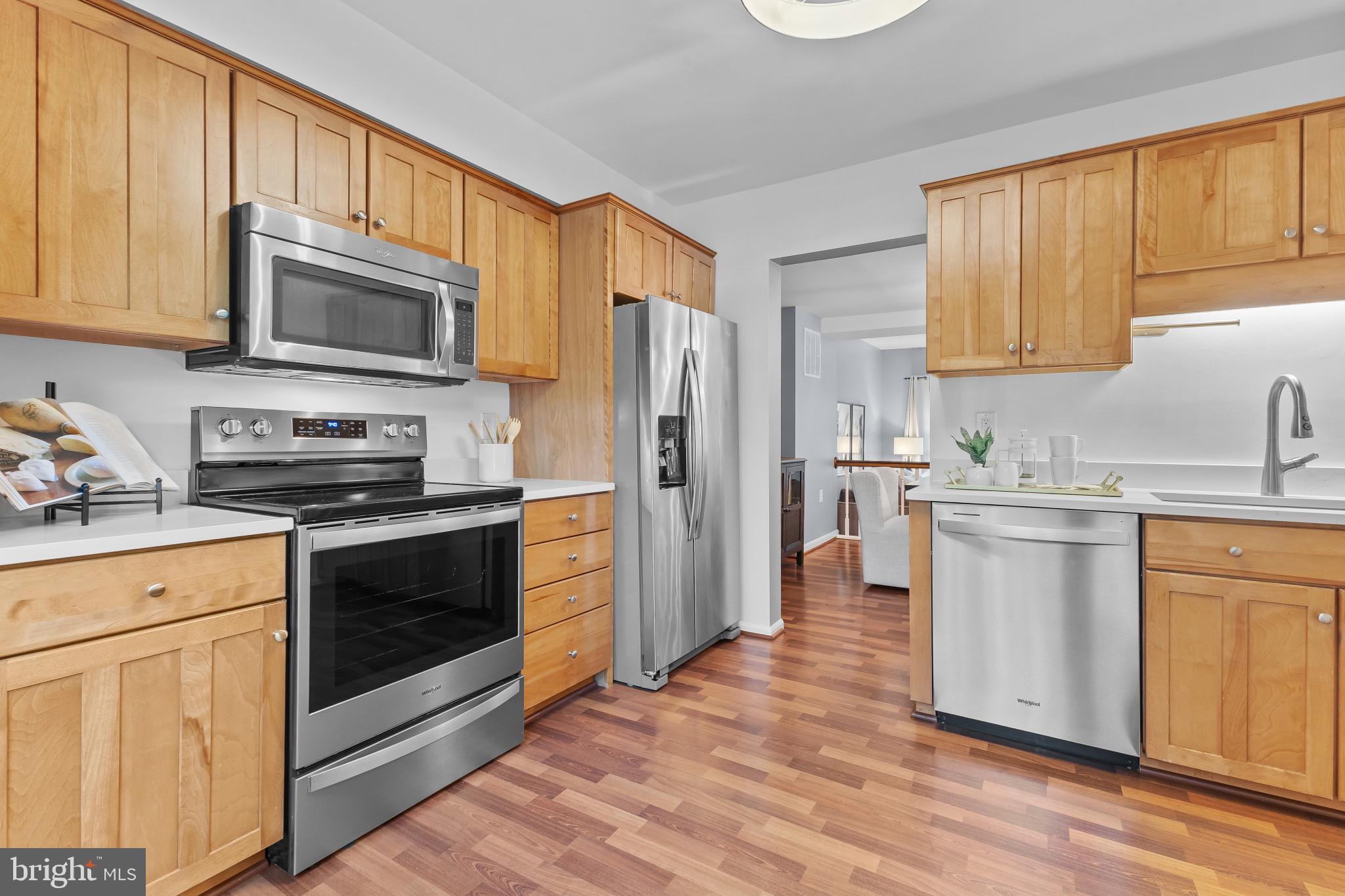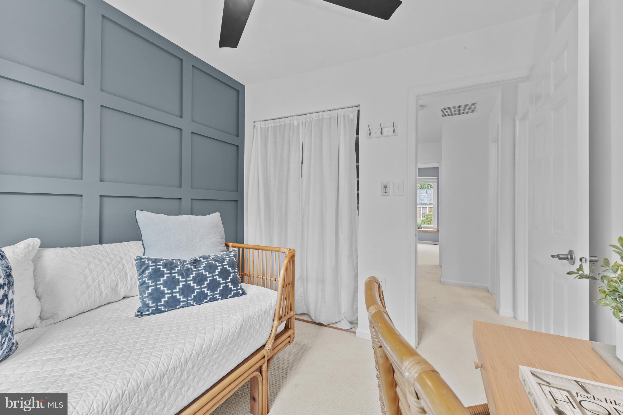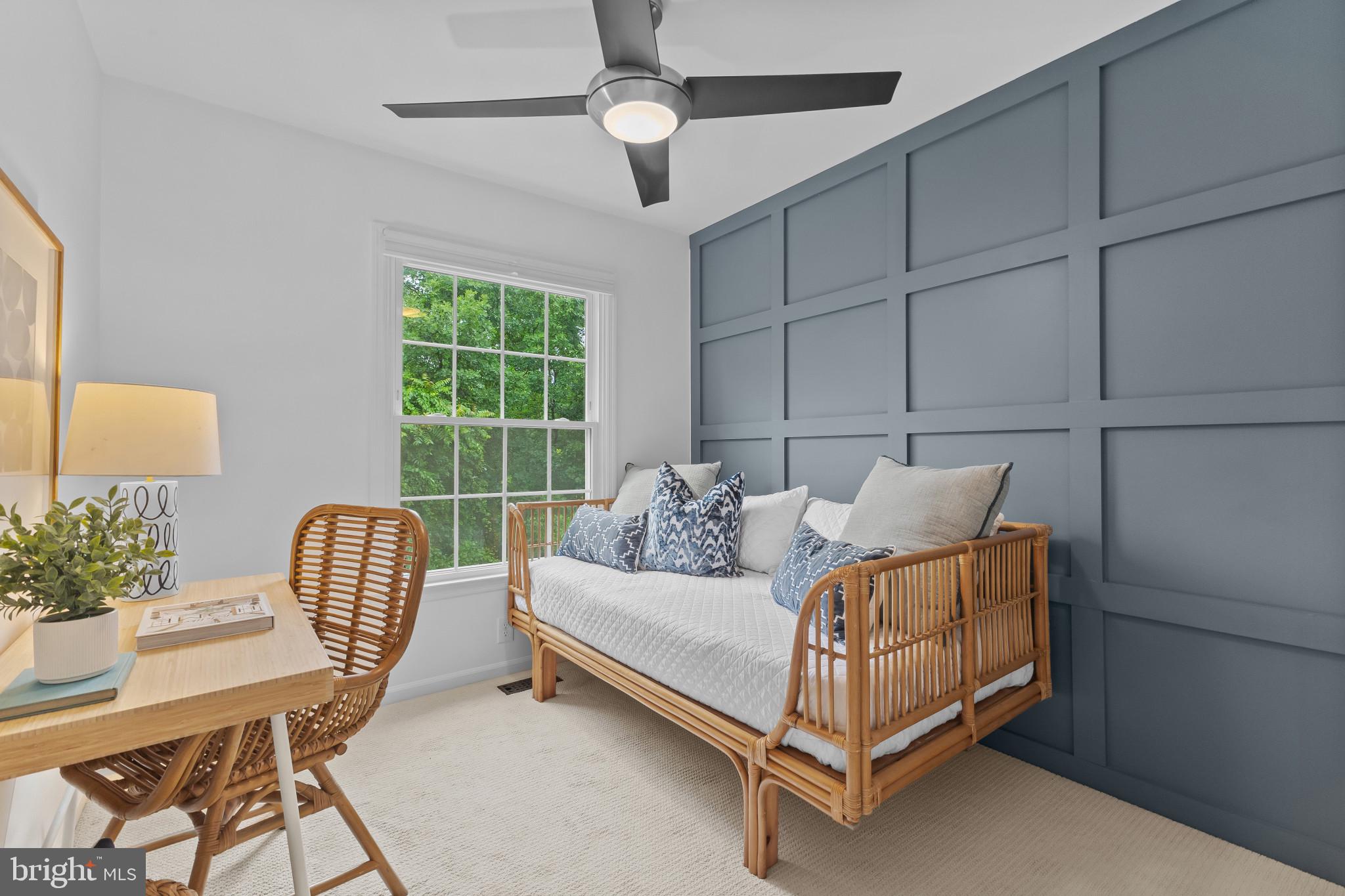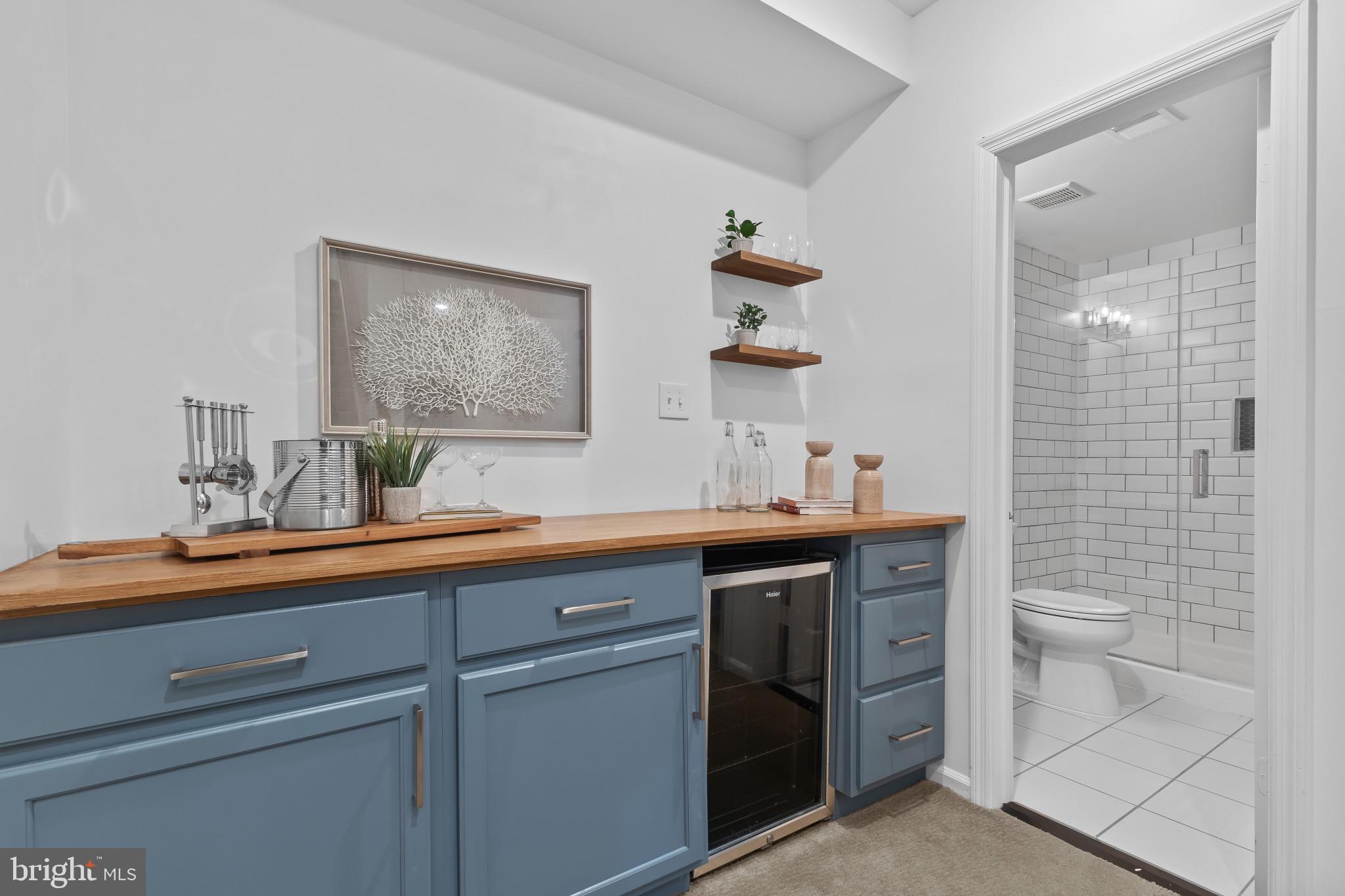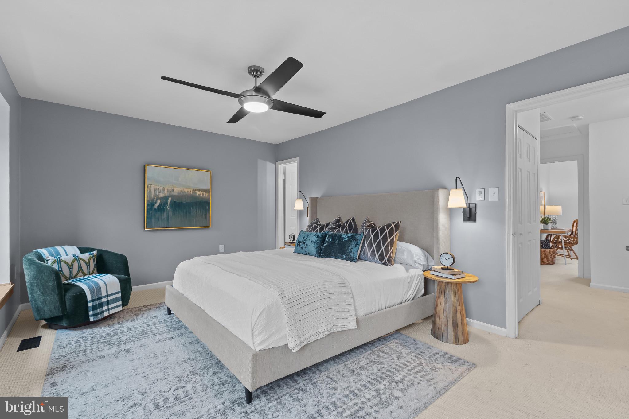 Welcome to 4328 Marjoram Ct, an updated three-level townhome in Alexandria's sought-after Loftridge community. Surrounded by parkland yet just minutes from Kingstowne shopping and dining, with easy access to I-495, Old Town, Washington, DC, and only 2.5 miles to Huntington Metro, this home offers the ideal blend of privacy and convenience. This thoughtfully upgraded home features 3 bedrooms and 3 full baths. All bathrooms were remodeled in 2020 with new tile, vanities, and fixtures. The kitchen showcases quartz countertops, updated appliances, and modern lighting. Additional highlights include a custom built-in media unit in the living room, a lower-level entertainment bar with beverage fridge, and detailed millwork and accent walls in the bedrooms. The main level includes a dedicated dining area that steps down into a cozy living room with direct access to the fenced backyard patio. The outdoor space features low-maintenance turf and backs to trees, creating a private, serene retreat. Upstairs, the primary suite offers window seating, an en-suite bath, ceiling fan, and wall sconces. Two additional bedrooms and the hall bath complete this level. The lower level includes a spacious rec room with fireplace, a third full bathroom, and a large utility/storage room with a new washer and dryer. Enjoy 2 assigned parking spaces, plentiful guest spaces, and a location close to parks, tennis courts, and Clermont Elementary.