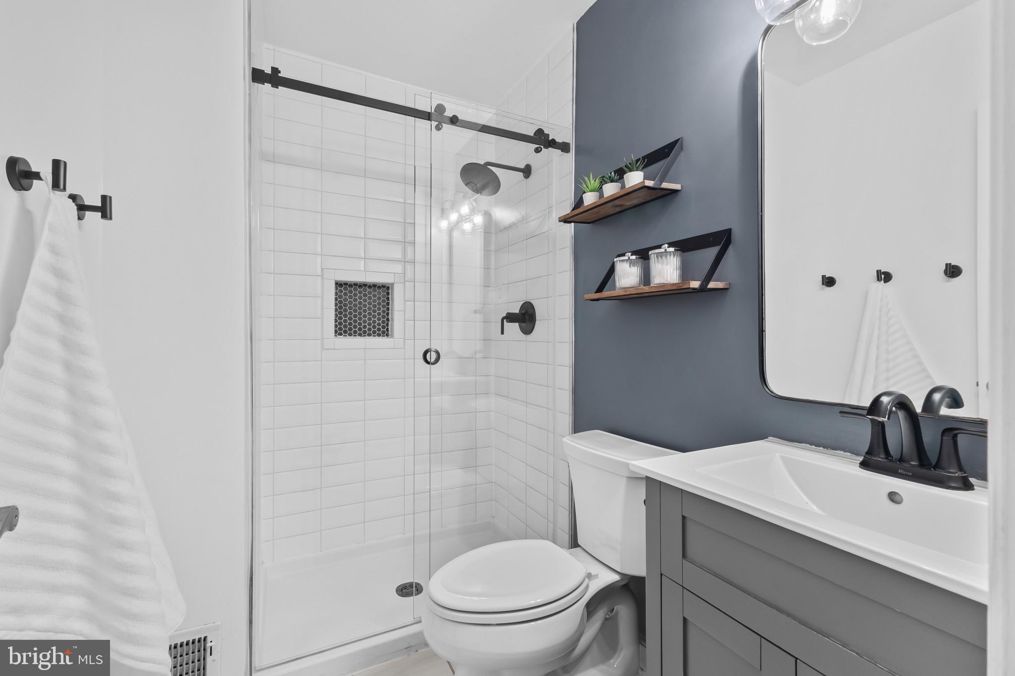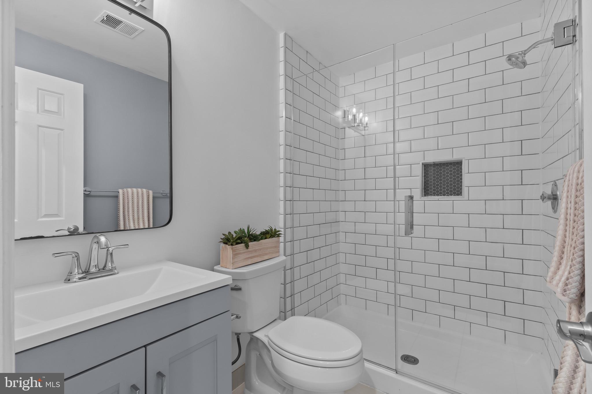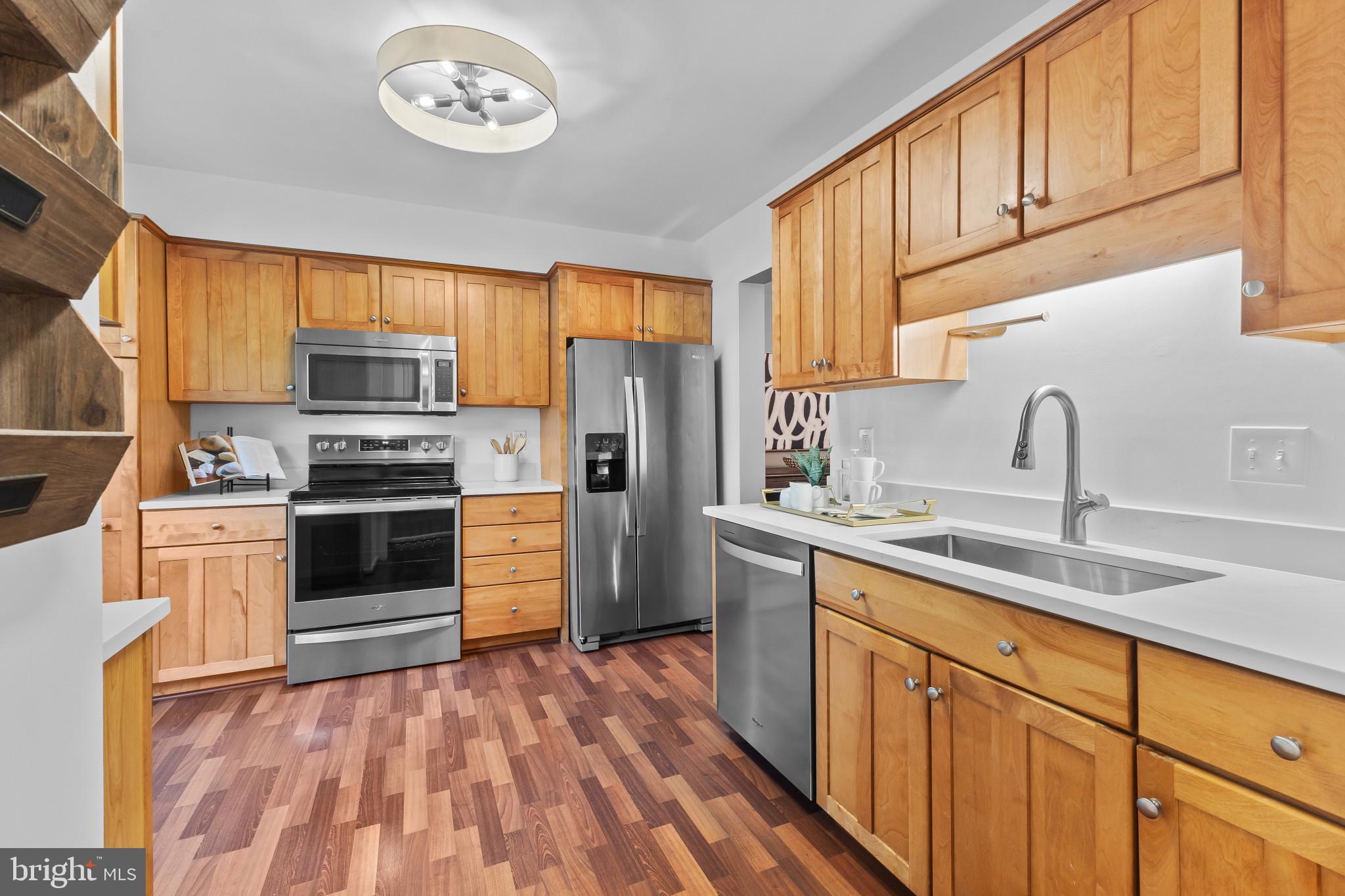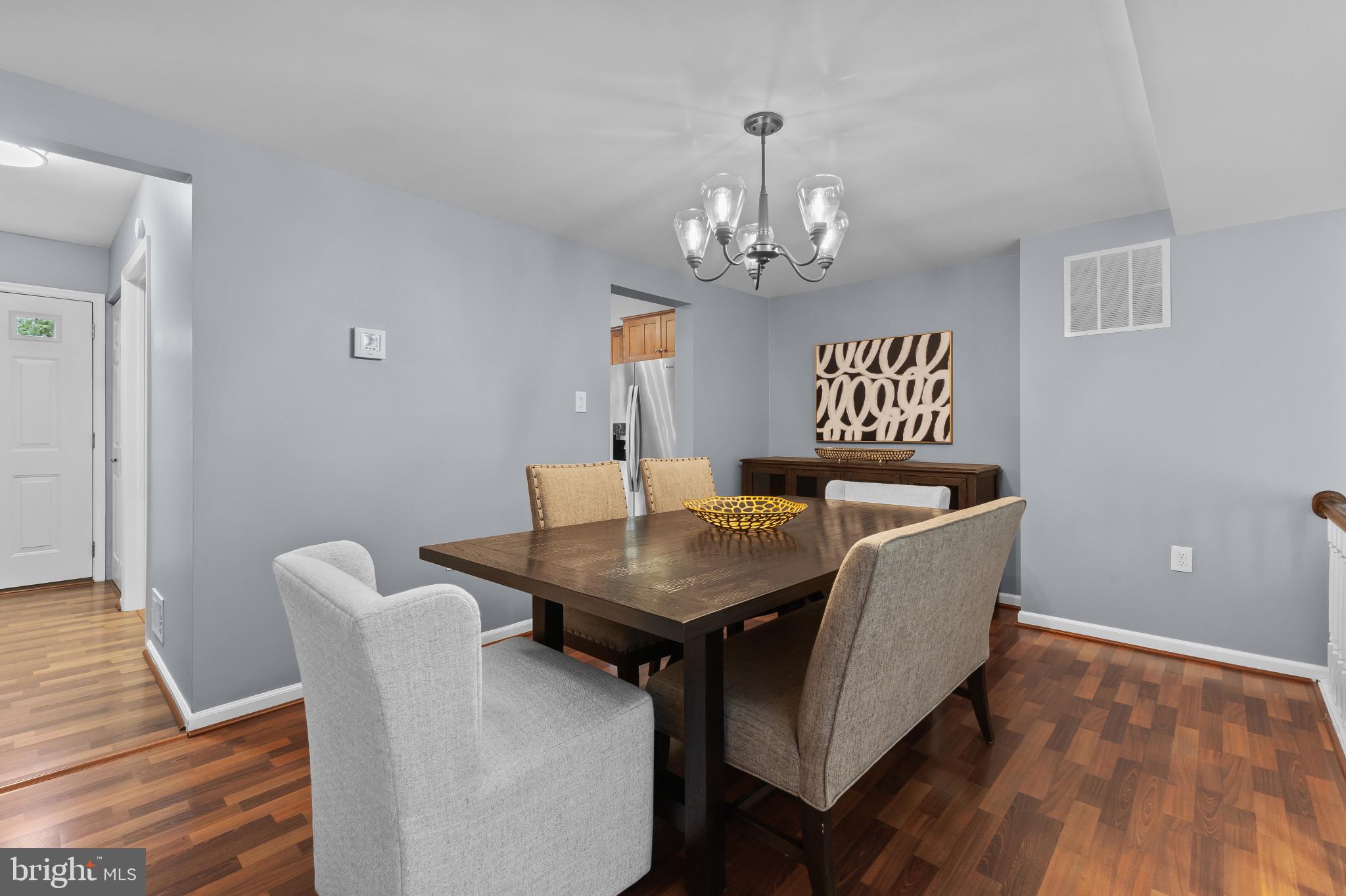 Welcome to 4328 Marjoram Ct, an updated three-level townhome in Alexandria's sought-after Loftridge community. Surrounded by parkland yet just minutes from Kingstowne shopping and dining, with easy access to I-495, Old Town, Washington, DC, and only 2.5 miles to Huntington Metro, this home offers the ideal blend of privacy and convenience. This thoughtfully upgraded home features 3 bedrooms and 3 full baths. All bathrooms were remodeled in 2020 with new tile, vanities, and fixtures. The kitchen showcases quartz countertops, updated appliances, and modern lighting. Additional highlights include a custom built-in media unit in the living room, a lower-level entertainment bar with beverage fridge, and detailed millwork and accent walls in the bedrooms. The main level includes a dedicated dining area that steps down into a cozy living room with direct access to the fenced backyard patio. The outdoor space features low-maintenance turf and backs to trees, creating a private, serene retreat. Upstairs, the primary suite offers window seating, an en-suite bath, ceiling fan, and wall sconces. Two additional bedrooms and the hall bath complete this level. The lower level includes a spacious rec room with fireplace, a third full bathroom, and a large utility/storage room with a new washer and dryer. Enjoy 2 assigned parking spaces, plentiful guest spaces, and a location close to parks, tennis courts, and Clermont Elementary.