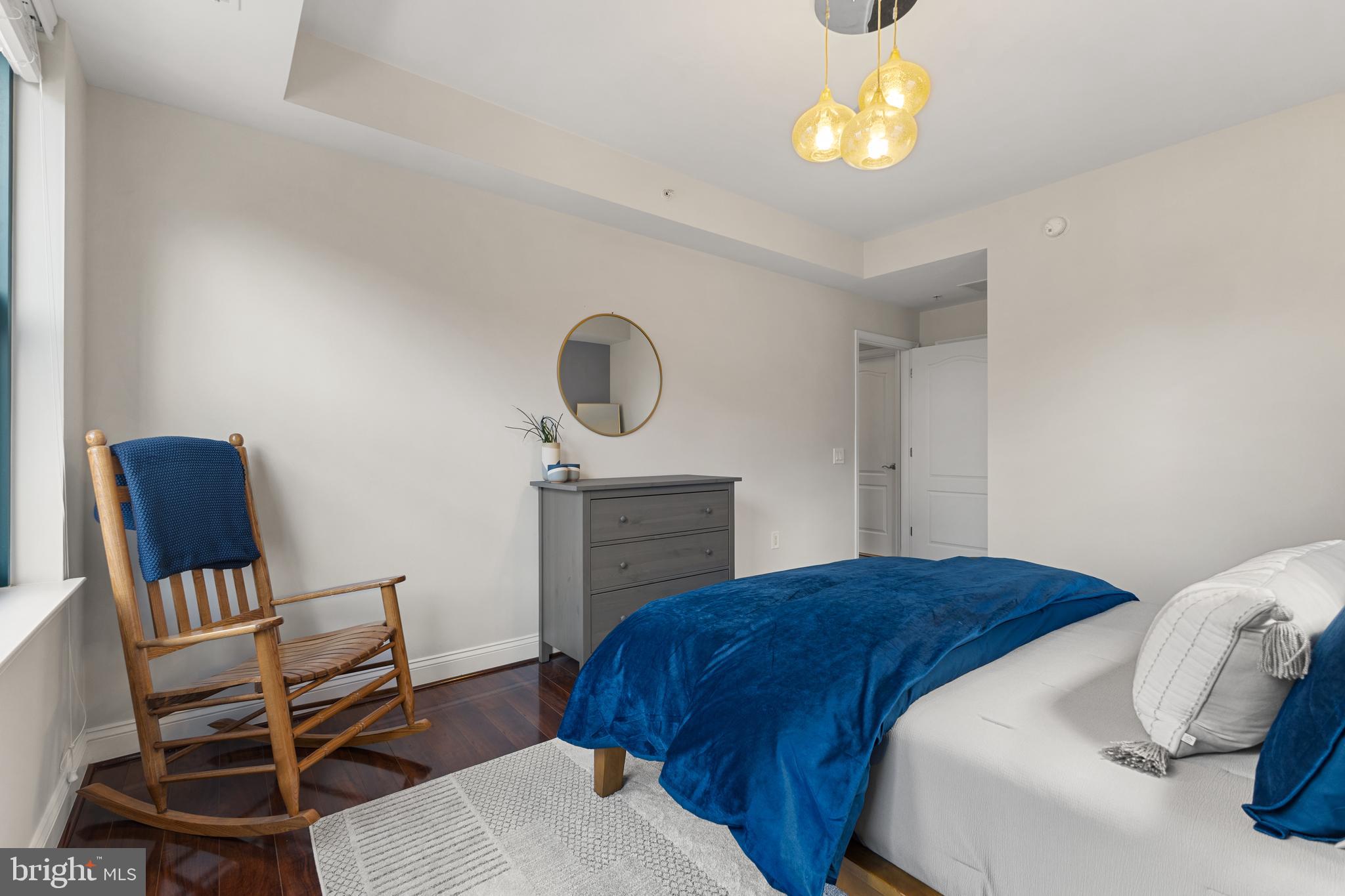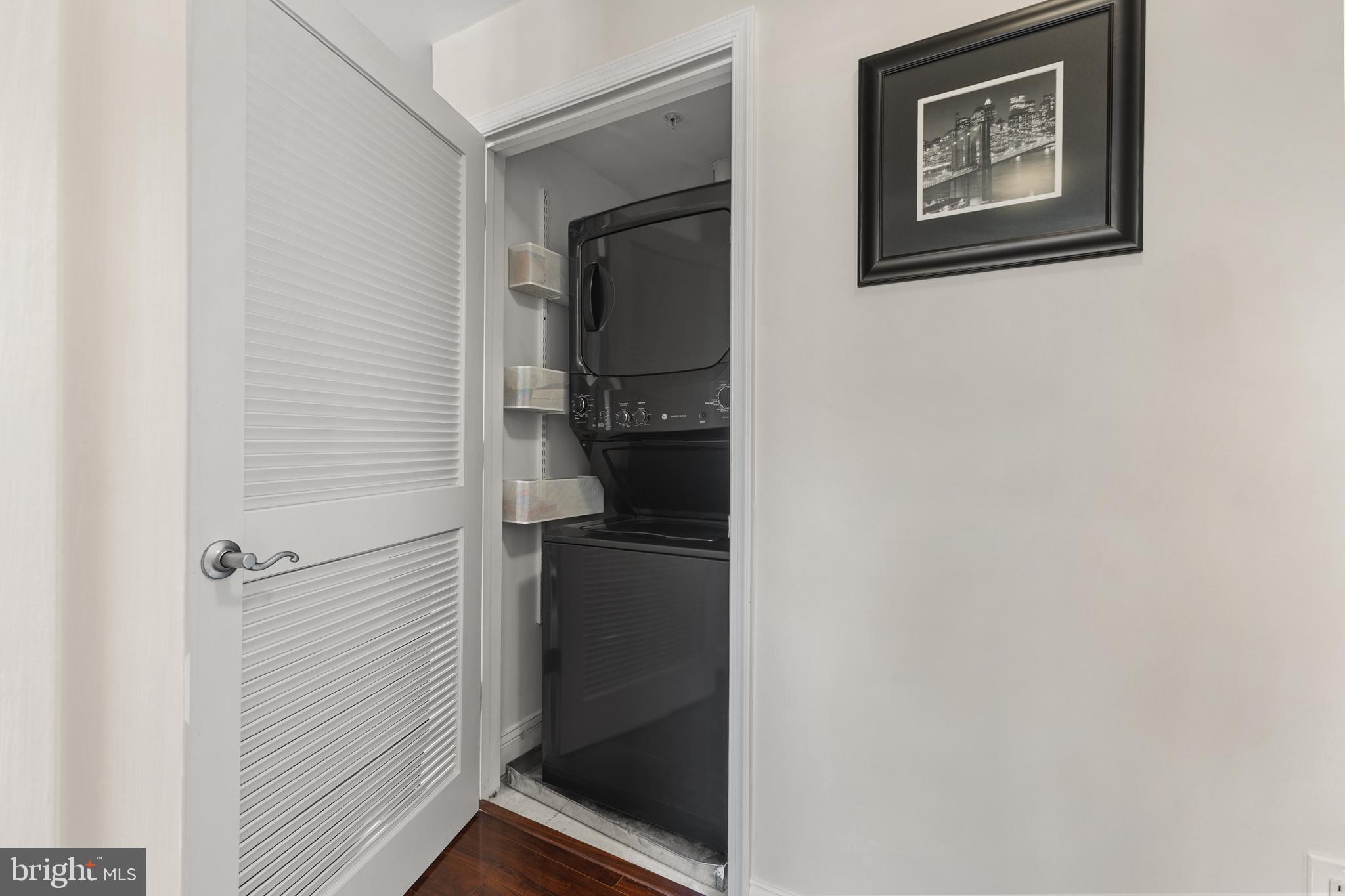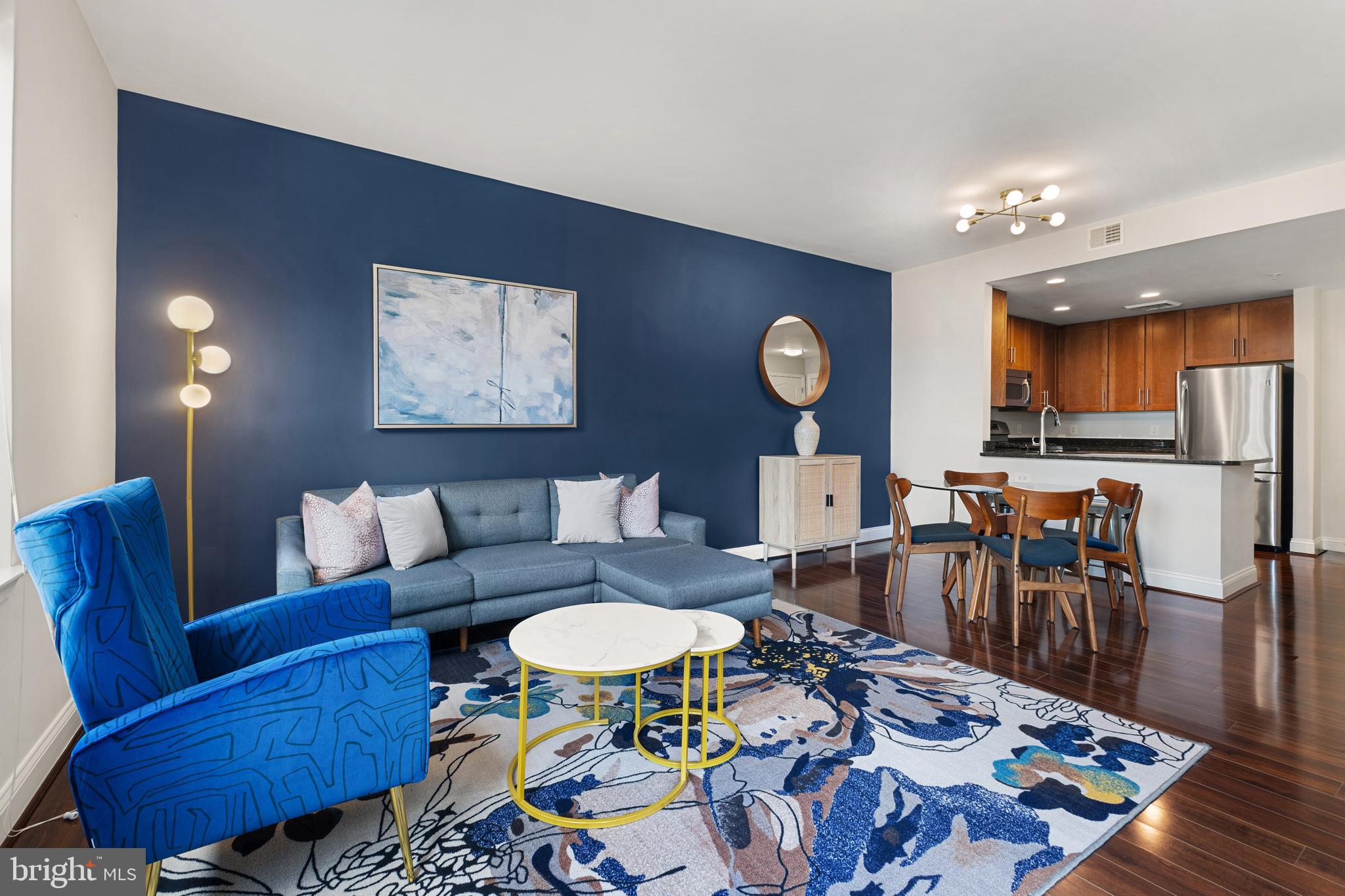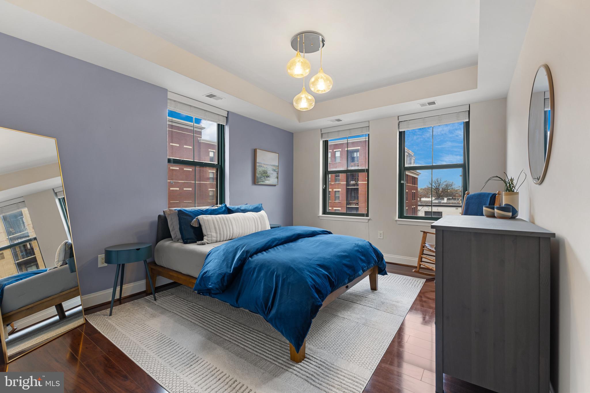 Incredible opportunity to own a rare one bedroom + den at The Henry in North Old Town!! This bright and modern condo features beautiful hardwood flooring throughout, oversized windows, stainless steel appliances + granite counters, spacious bathroom, built-out walk-in closet, and in-unit laundry. The open-concept kitchen overlooks the living and dining areas, leading to a private balcony with peaceful interior views of The Henry courtyard and green space. Natural light fills both the bedroom and versatile den, which can easily serve as a home office, guest space, or even a second bedroom. This unique condo is an end unit and thus offers two walls with windows for more natural light! Closet for storage as you enter the condo + additional storage cabinet in bathroom. Washer/Dryer replaced in 2023. The Henry offers an array of top-tier amenities, including a residents' lounge with a movie room, pool table, kitchen, and library. Enjoy the state of the art fitness center, gated courtyard, two rooftop terraces, secure assigned parking and storage unit, and a concierge at the front desk for added convenience and security. The Henry offers city living at its very best - located just blocks from many beloved local shops and restaurants, Trader Joe's and Harris Teeter grocery stores, and easy commuting from the Braddock Road Metro into DC. Less than one block to Starbucks, Bastille Brasserie & Bar, Studio Barre and community park or stroll to the Potomac River, King Street, Oronoco Bay Park and more!! Less than 4 miles to National Airport!