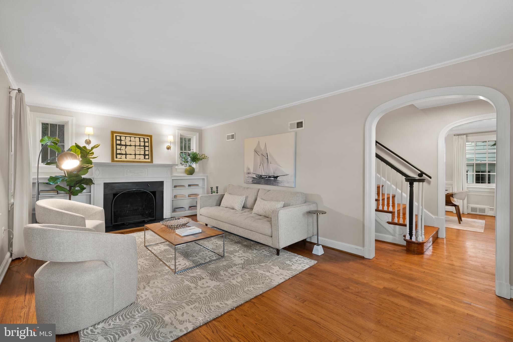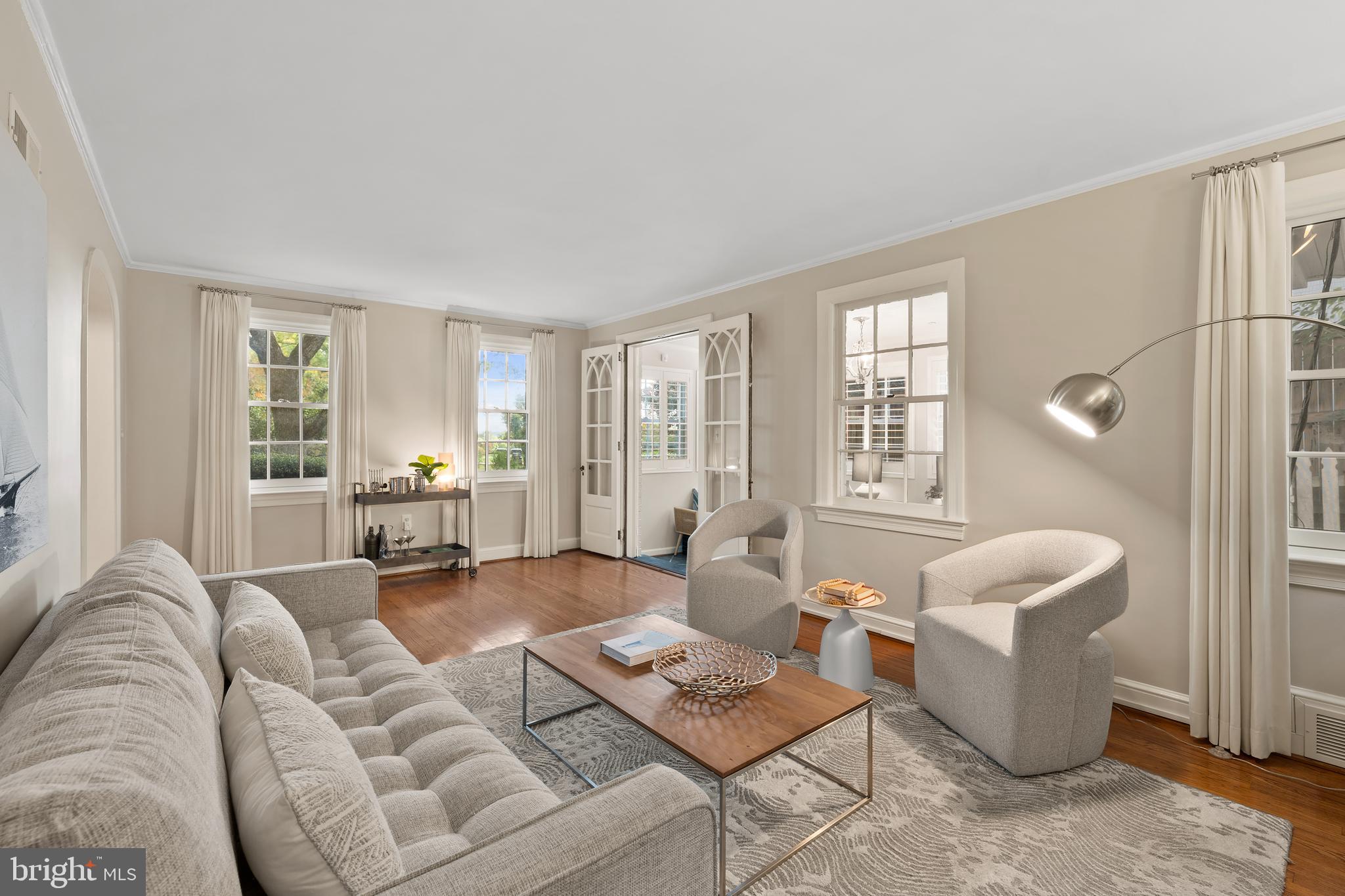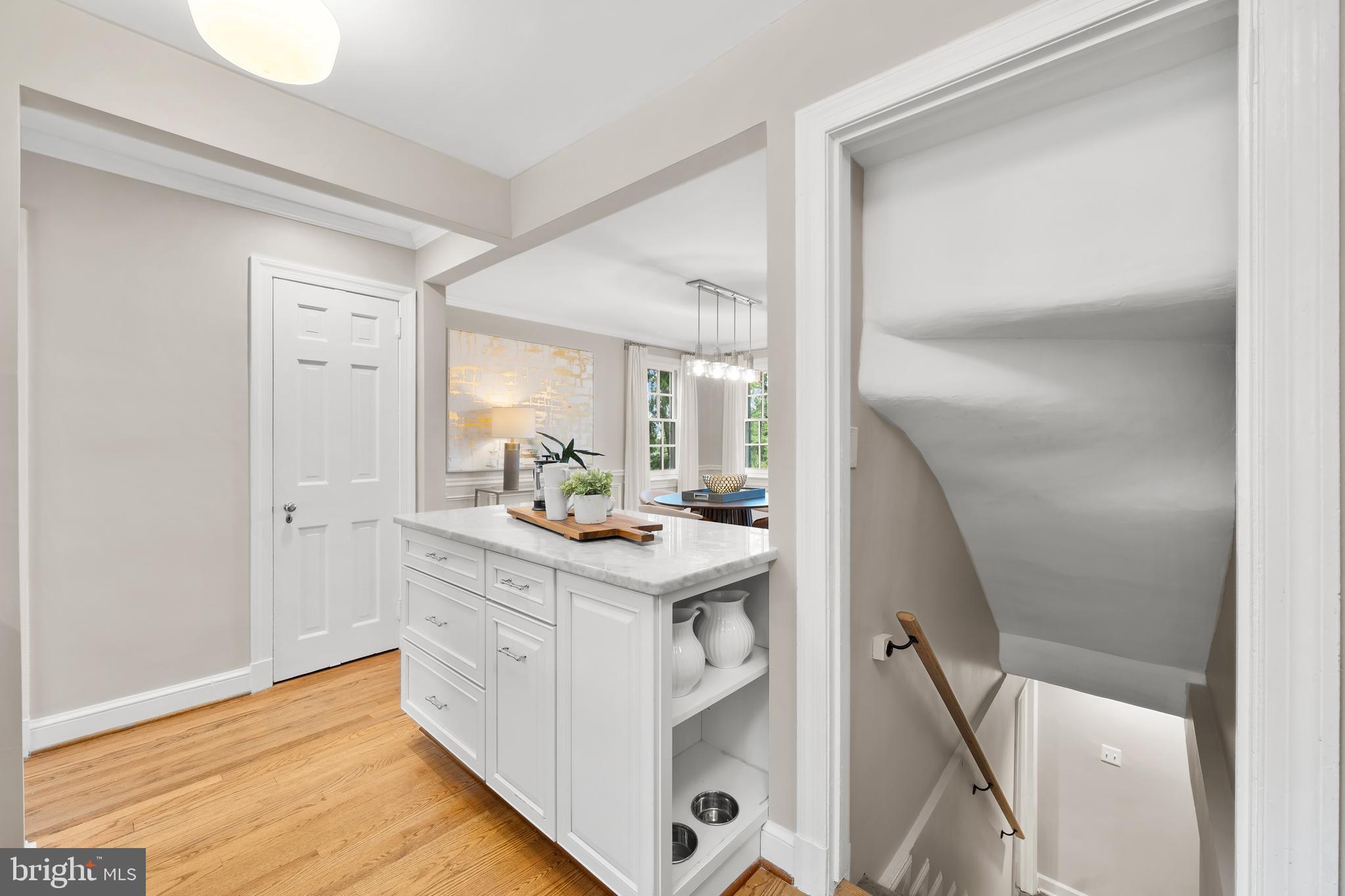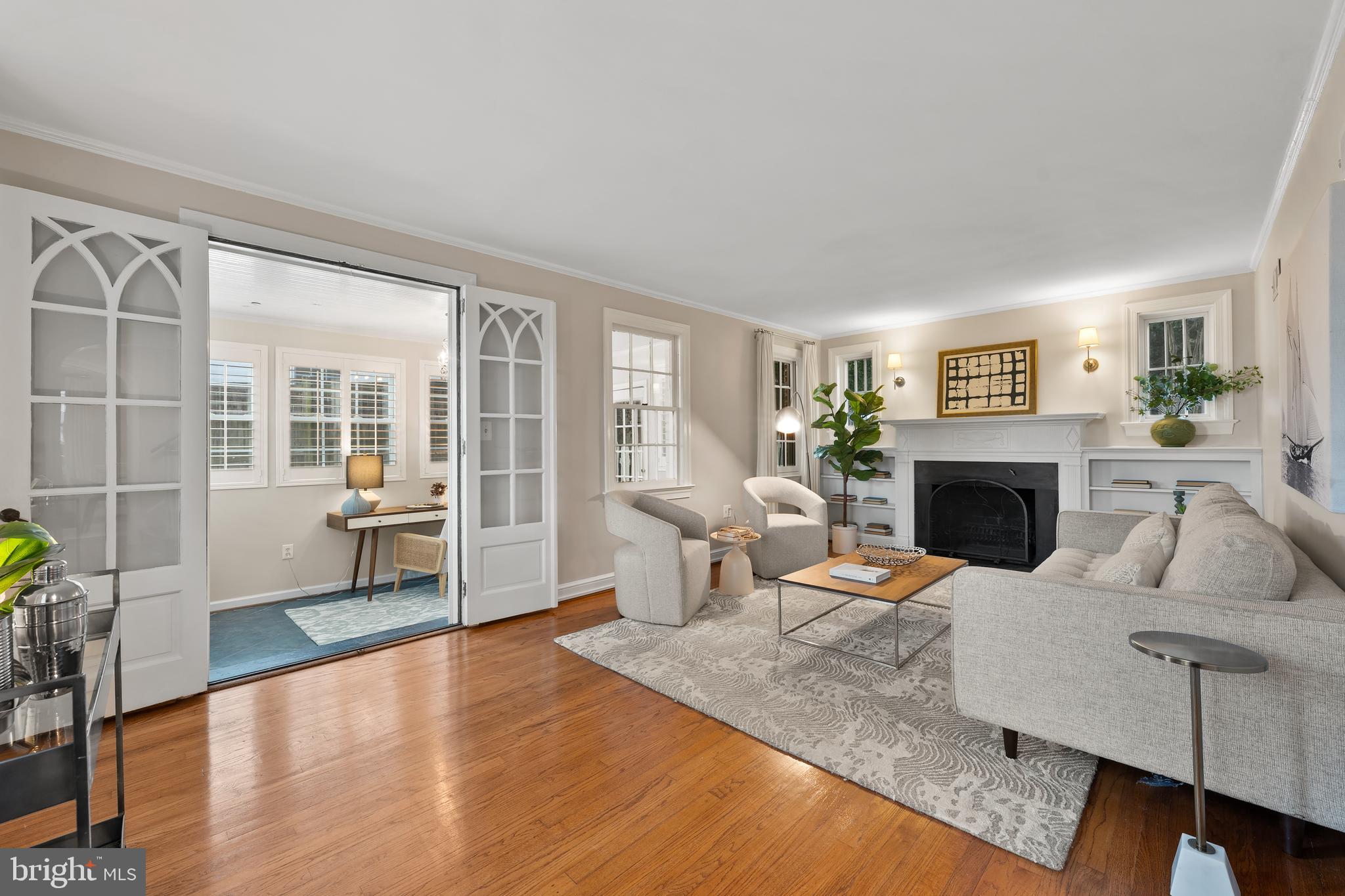 Charming brick colonial in coveted Belle Haven neighborhood!! Move-in ready with renovated kitchen and baths!! Set back off the street and just steps to Belle Haven Country Club! Traditional center hall floor plan offering the perfect combination of classic elegance and modern finishes. Step in to the welcoming foyer where arched openings lead to both the living and dining rooms. The spacious living room is complete with wood-burning fireplace and offers plenty of space to entertain. French doors from the living room lead to the sun-drenched office/playroom or sunroom which walks out to the back patio. On the other side of the home the renovated white kitchen (with marble counters and SS appliances) conveniently opens to the dining room and has a large pantry closet. There is also a door to the backyard in the kitchen allowing for easy indoor to outdoor dining. A deep coat closet in the foyer and a powder room thoughtfully tucked by the back door complete the main level. Upstairs you'll find a tranquil primary suite with en suite bathroom and walk up stairs to the 4th level which has been thoughtfully renovated into an incredible large primary closet with custom built-ins (there is a second closet back down in the primary bedroom, as well!). A finished storage or hobby room is also on this 4th level. Down the hall from the primary you'll find two additional bedrooms, a second full bath in the hall (with tub shower) and linen closet. The finished basement walks out to the backyard and features a rec room, 4th bedroom/den with attached full bath, laundry/utility room and mud room space by the back door. Large rear deck steps down to stone patio and sprawling backyard with picturesque mature landscaping. Large/wide driveway allows for tons of parking + one car garage. Tons of natural light throughout, neutral paint throughout, modern light fixtures, beautiful hardwood floors. Recent notable updates include: New Pella windows (2019); HVAC (2020); Attic renovation to create built-out/ custom walk-up primary closet (2020); Hot water heater (2022); Refrigerator (2024); beautiful custom drapes in all upper level bedrooms, dining room and living room. Stroll to local favorites Belle Haven Pizzeria (The Haven) or the Custard Shack on Belle Haven Road! Enjoy being minutes from Old Town Alexandria, Belle View Elementary School, The GW bike trail and Belle View Shopping center (where you'll find everything from grocery store to post office to convenience stores to restaurants and more)! Convenient access to I-495 and the GW Parkway for easy commuting. Just 1 mile to Huntington Metro and 5 miles to National Airport. Don't miss this incredible opportunity in Belle Haven!!
