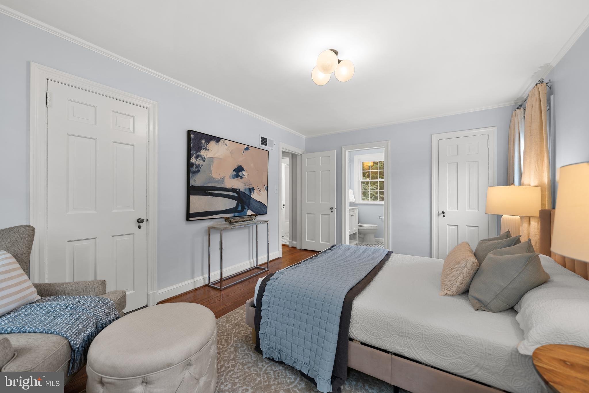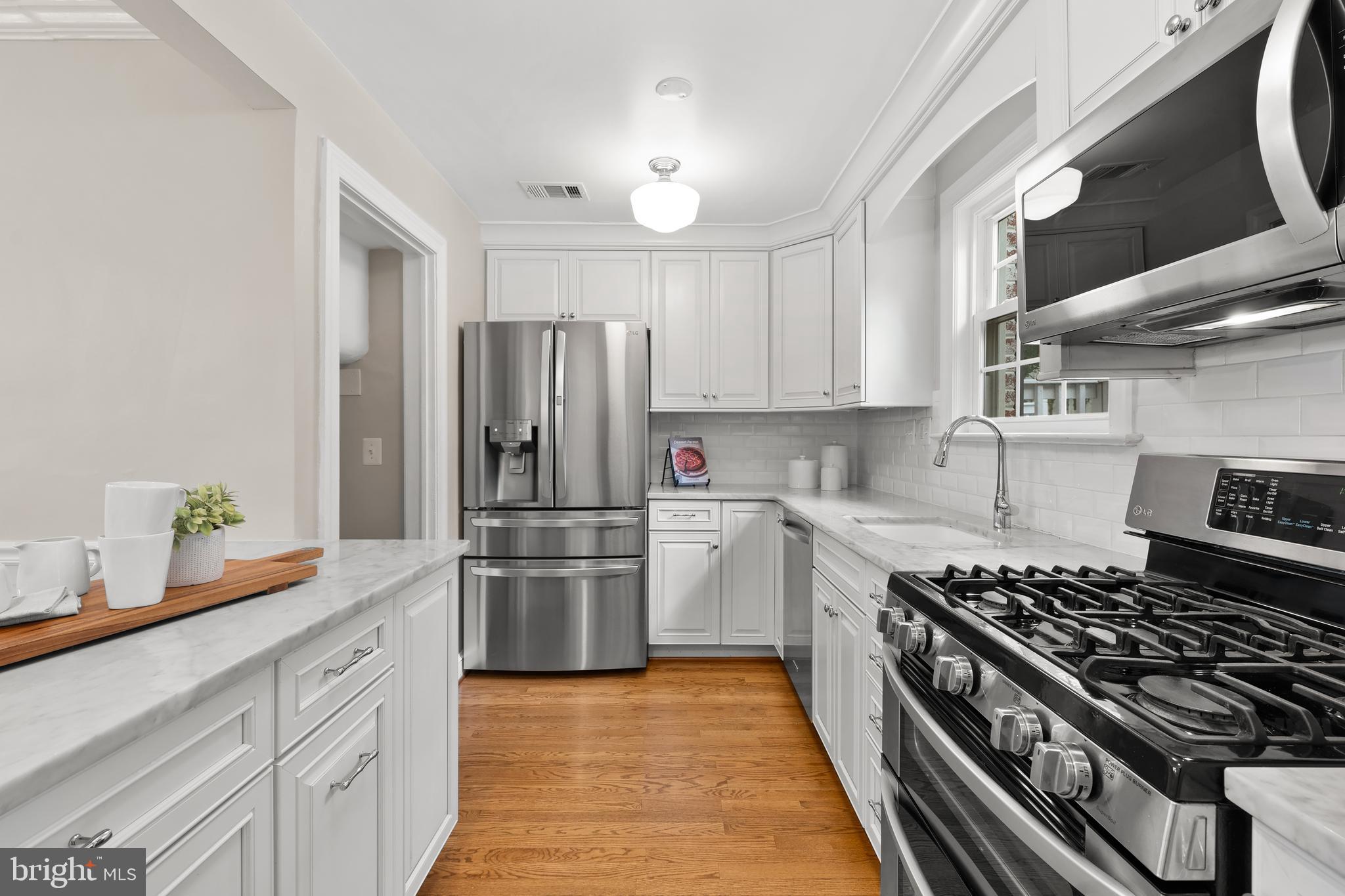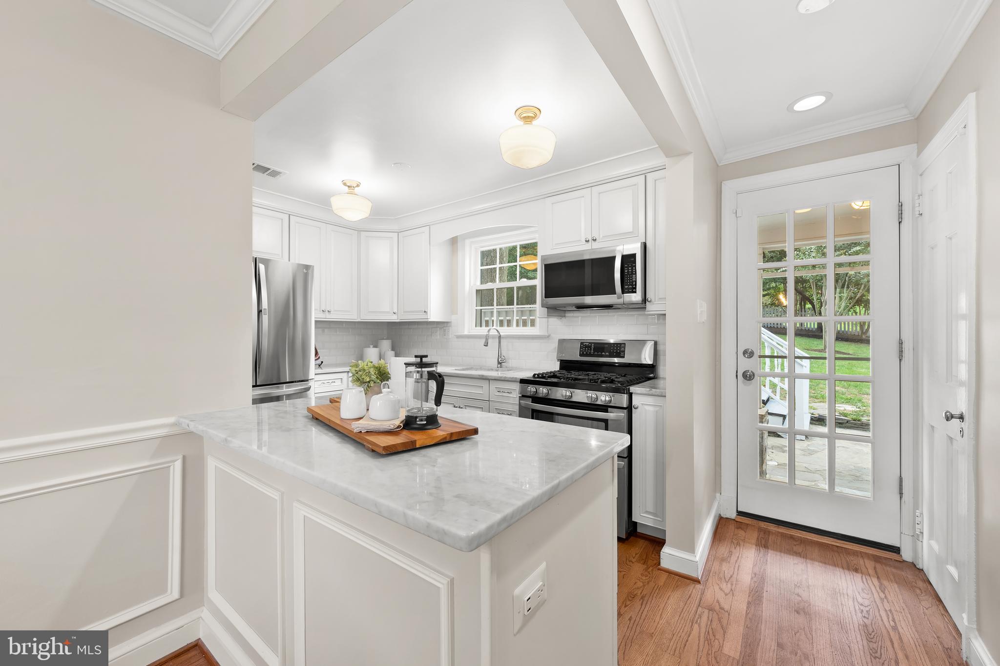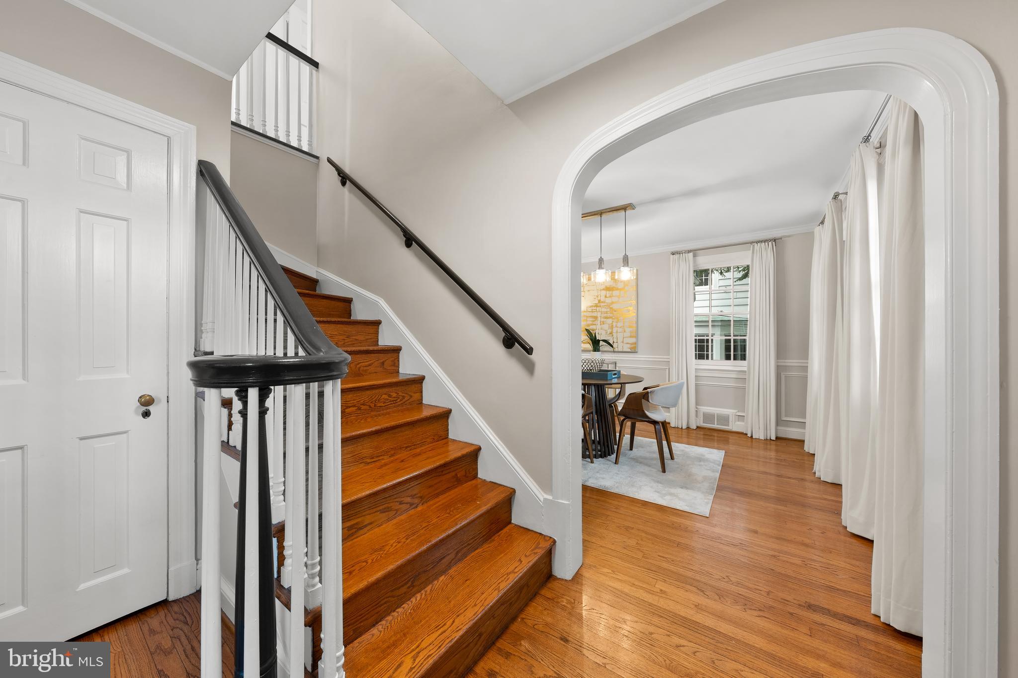 Charming brick colonial in coveted Belle Haven neighborhood!! Move-in ready with renovated kitchen and baths!! Set back off the street and just steps to Belle Haven Country Club! Traditional center hall floor plan offering the perfect combination of classic elegance and modern finishes. Step in to the welcoming foyer where arched openings lead to both the living and dining rooms. The spacious living room is complete with wood-burning fireplace and offers plenty of space to entertain. French doors from the living room lead to the sun-drenched office/playroom or sunroom which walks out to the back patio. On the other side of the home the renovated white kitchen (with marble counters and SS appliances) conveniently opens to the dining room and has a large pantry closet. There is also a door to the backyard in the kitchen allowing for easy indoor to outdoor dining. A deep coat closet in the foyer and a powder room thoughtfully tucked by the back door complete the main level. Upstairs you'll find a tranquil primary suite with en suite bathroom and walk up stairs to the 4th level which has been thoughtfully renovated into an incredible large primary closet with custom built-ins (there is a second closet back down in the primary bedroom, as well!). A finished storage or hobby room is also on this 4th level. Down the hall from the primary you'll find two additional bedrooms, a second full bath in the hall (with tub shower) and linen closet. The finished basement walks out to the backyard and features a rec room, 4th bedroom/den with attached full bath, laundry/utility room and mud room space by the back door. Large rear deck steps down to stone patio and sprawling backyard with picturesque mature landscaping. Large/wide driveway allows for tons of parking + one car garage. Tons of natural light throughout, neutral paint throughout, modern light fixtures, beautiful hardwood floors. Recent notable updates include: New Pella windows (2019); HVAC (2020); Attic renovation to create built-out/ custom walk-up primary closet (2020); Hot water heater (2022); Refrigerator (2024); beautiful custom drapes in all upper level bedrooms, dining room and living room. Stroll to local favorites Belle Haven Pizzeria (The Haven) or the Custard Shack on Belle Haven Road! Enjoy being minutes from Old Town Alexandria, Belle View Elementary School, The GW bike trail and Belle View Shopping center (where you'll find everything from grocery store to post office to convenience stores to restaurants and more)! Convenient access to I-495 and the GW Parkway for easy commuting. Just 1 mile to Huntington Metro and 5 miles to National Airport. Don't miss this incredible opportunity in Belle Haven!!