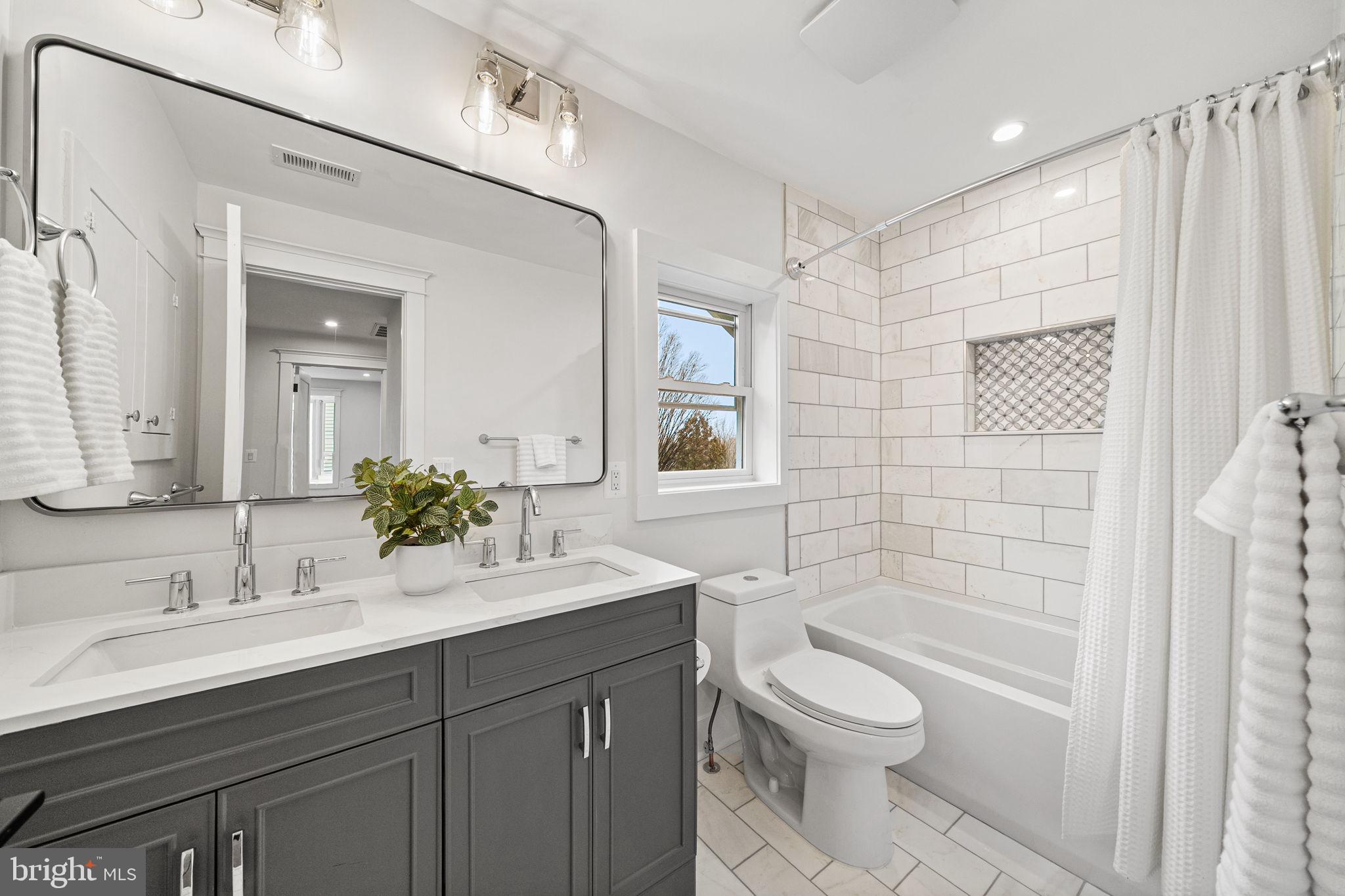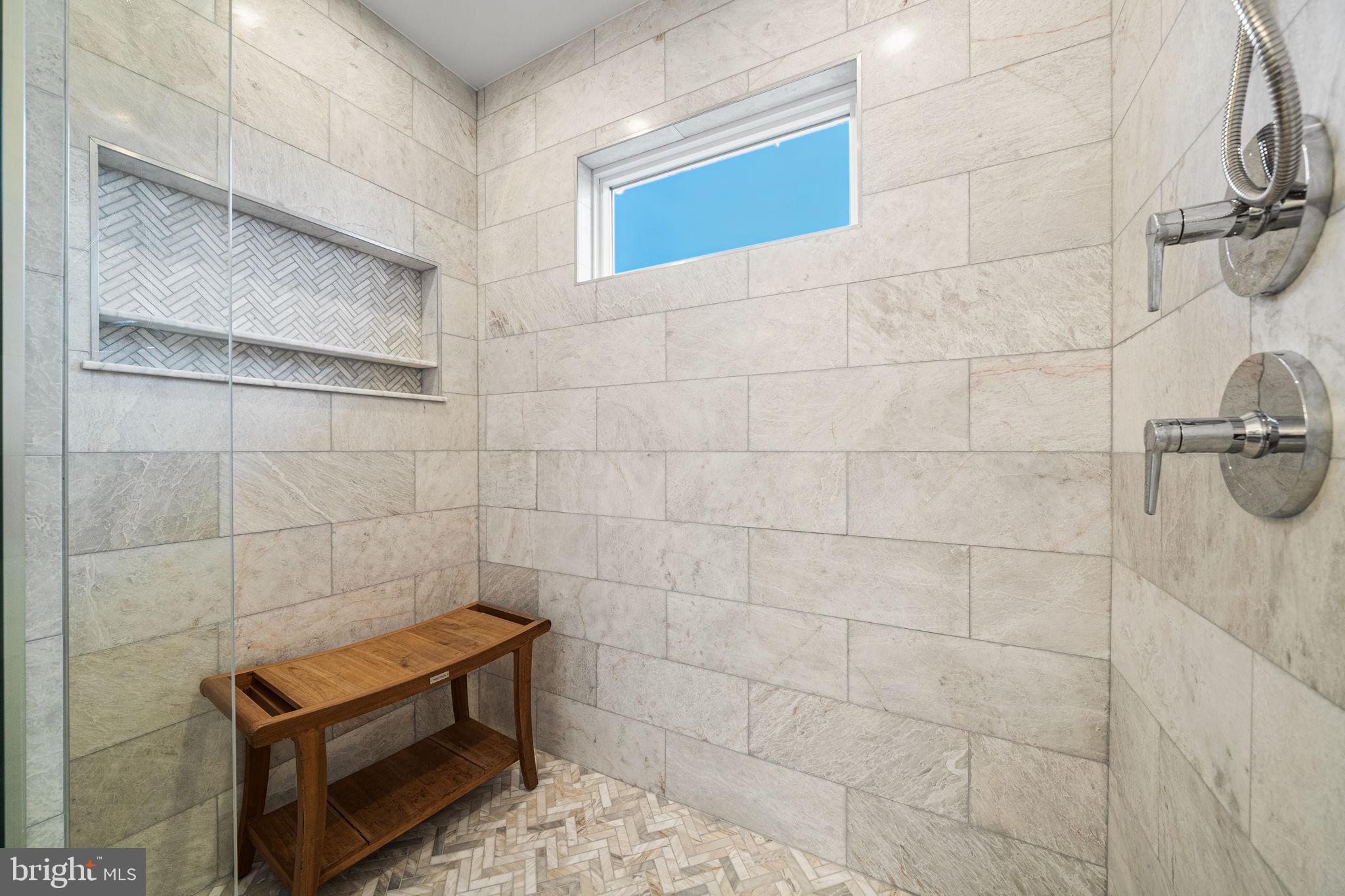 Upstairs, the primary suite is a true retreat, offering a spacious walk-in closet and a spa-caliber bath finished entirely in marble, with a frameless glass shower, dual Kohler fixtures, and a private water closet. Two additional bedrooms, one with a built-in window seat and another with generous closet space and the charm of an optional reading nook, share a beautifully finished hall bath with soaking tub and Kohler fixtures. A dedicated laundry room with utility sink and built-in cabinetry completes the upper level.