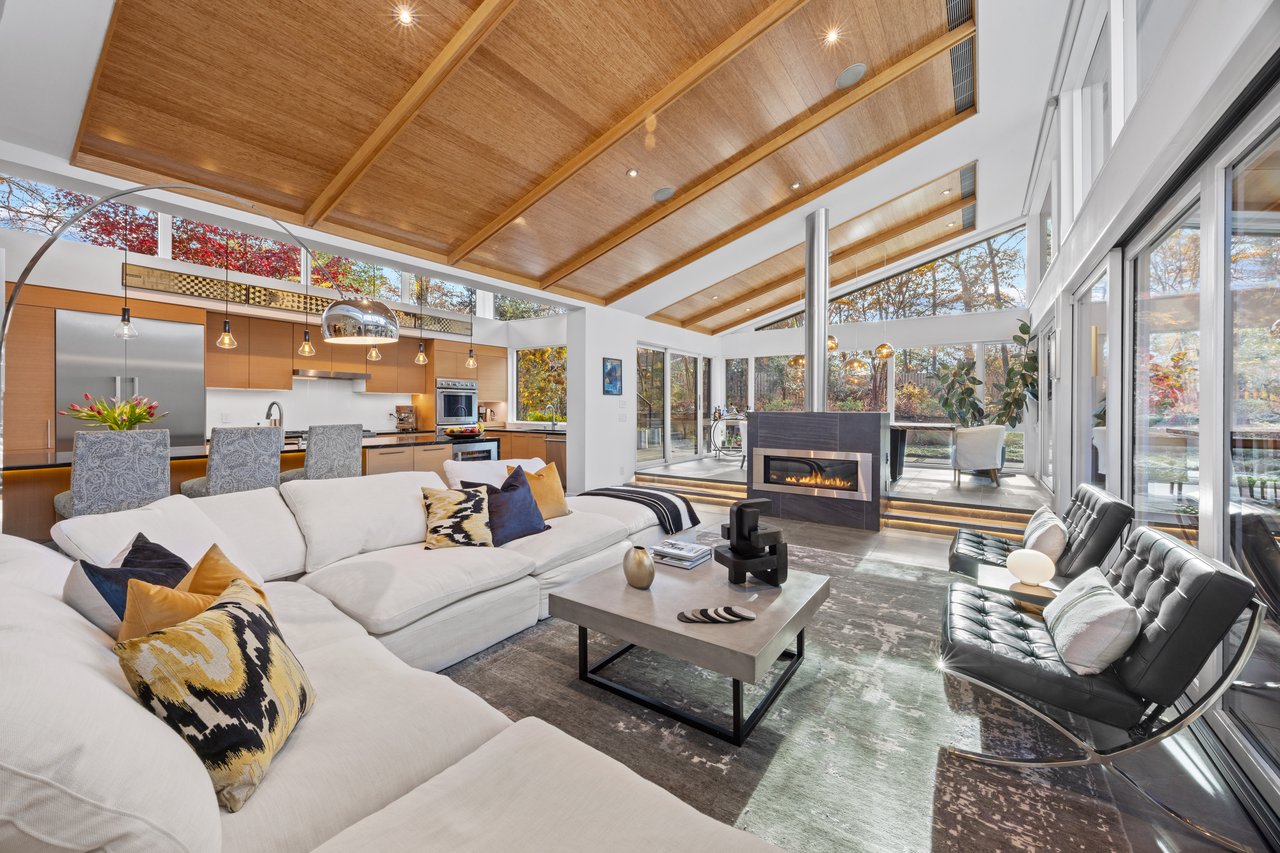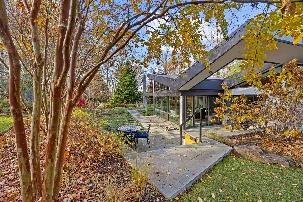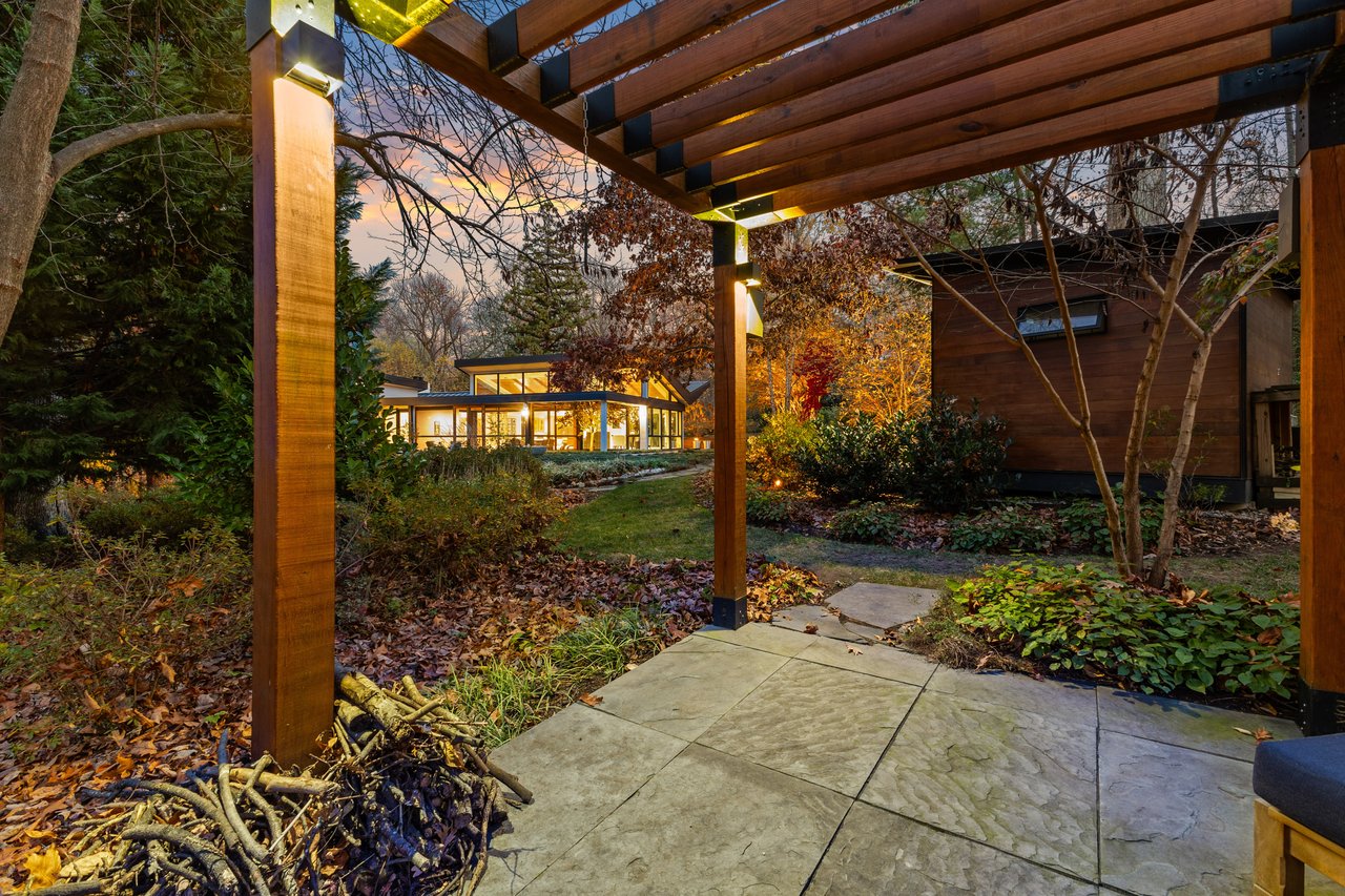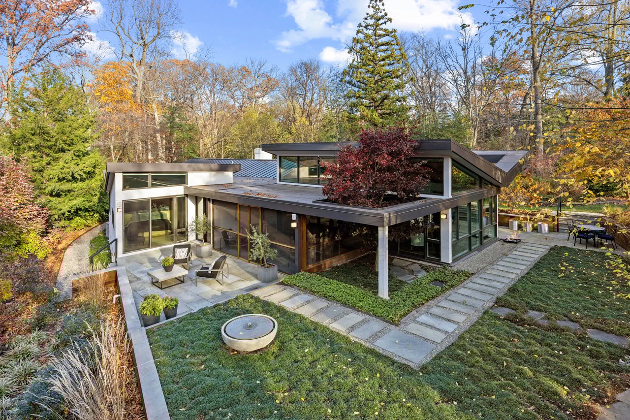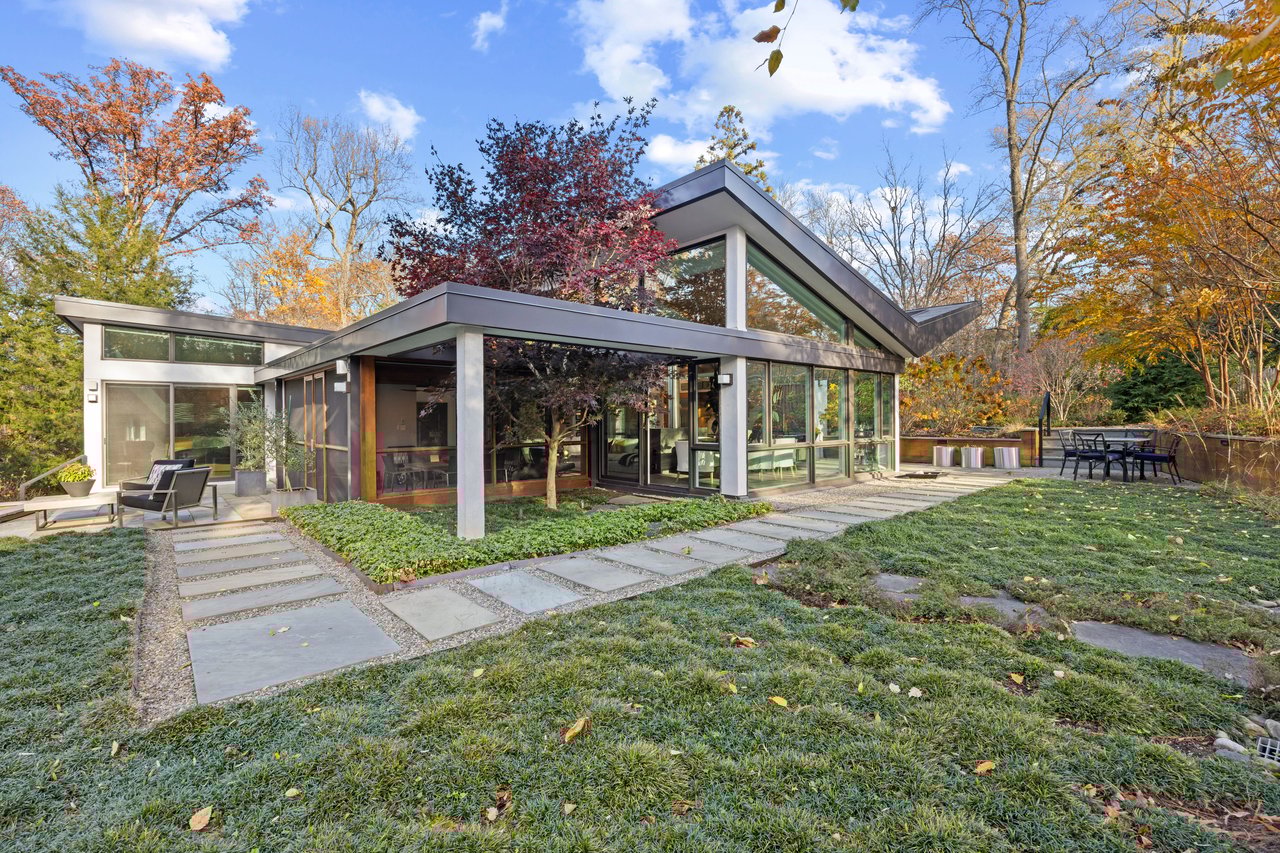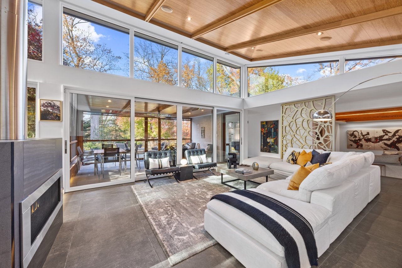 Winner of the Home and Design Grand Award for Curb Appeal in 2024, this secluded mid-century modern home is like no other. Designed by award winning architect Ben Ames, this home is defined by its striking dual butterfly roofs, walls of floor to ceiling glass and seamless integration with nature. Built to commercial standards with metal frame, concrete slab, commercial grade windows and sliding doors by LaCANTINA Systems. Every line, every material and every texture has a purpose and a reason that connects the home with its surrounding environment. It’s perfectly sited on a wooded 0.82-acre lot offering a private retreat that harmonizes effortless luxury with timeless elegance. Mature trees and professionally designed gardens frame this serene sanctuary, complete with meandering pathways, cedar-clad retaining walls, and glowing landscape lighting.