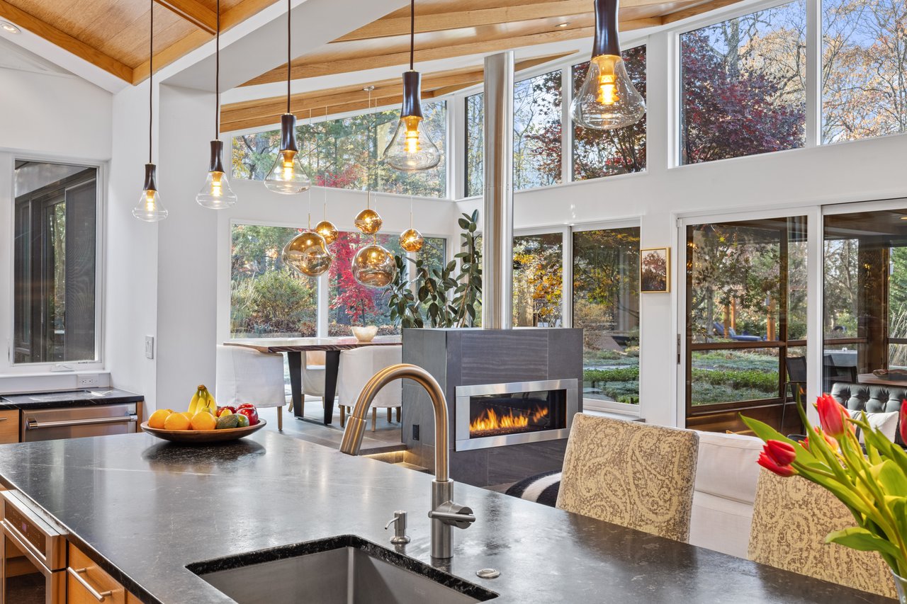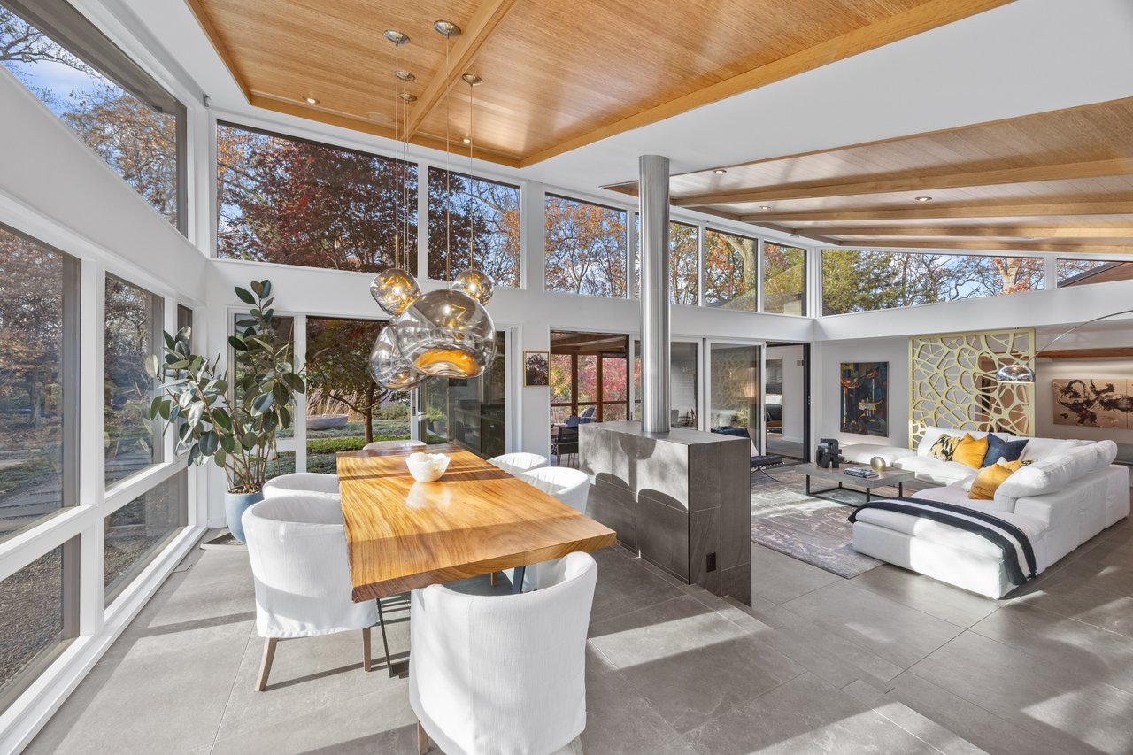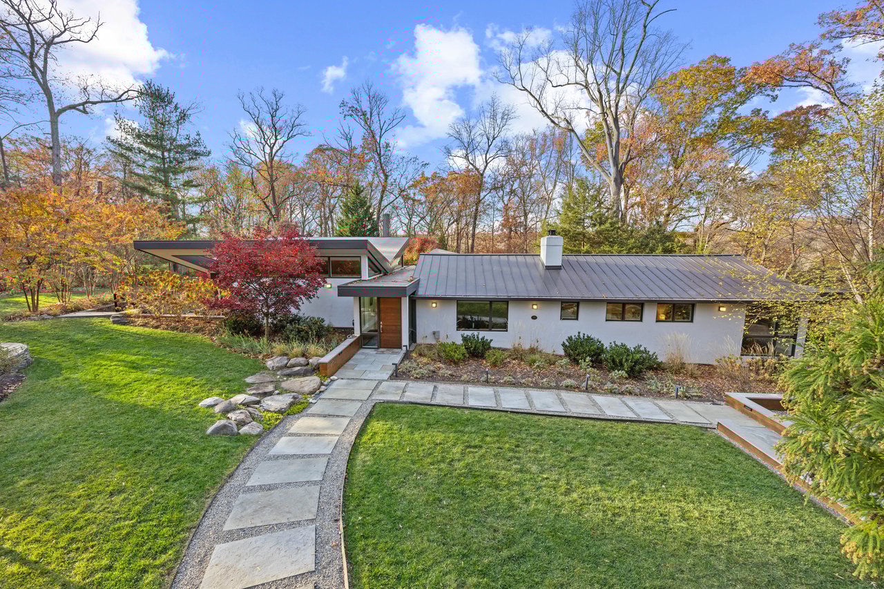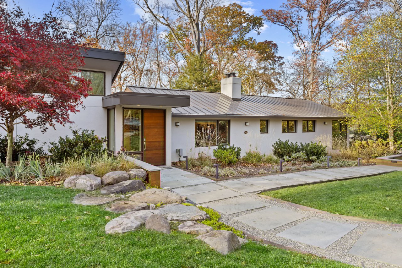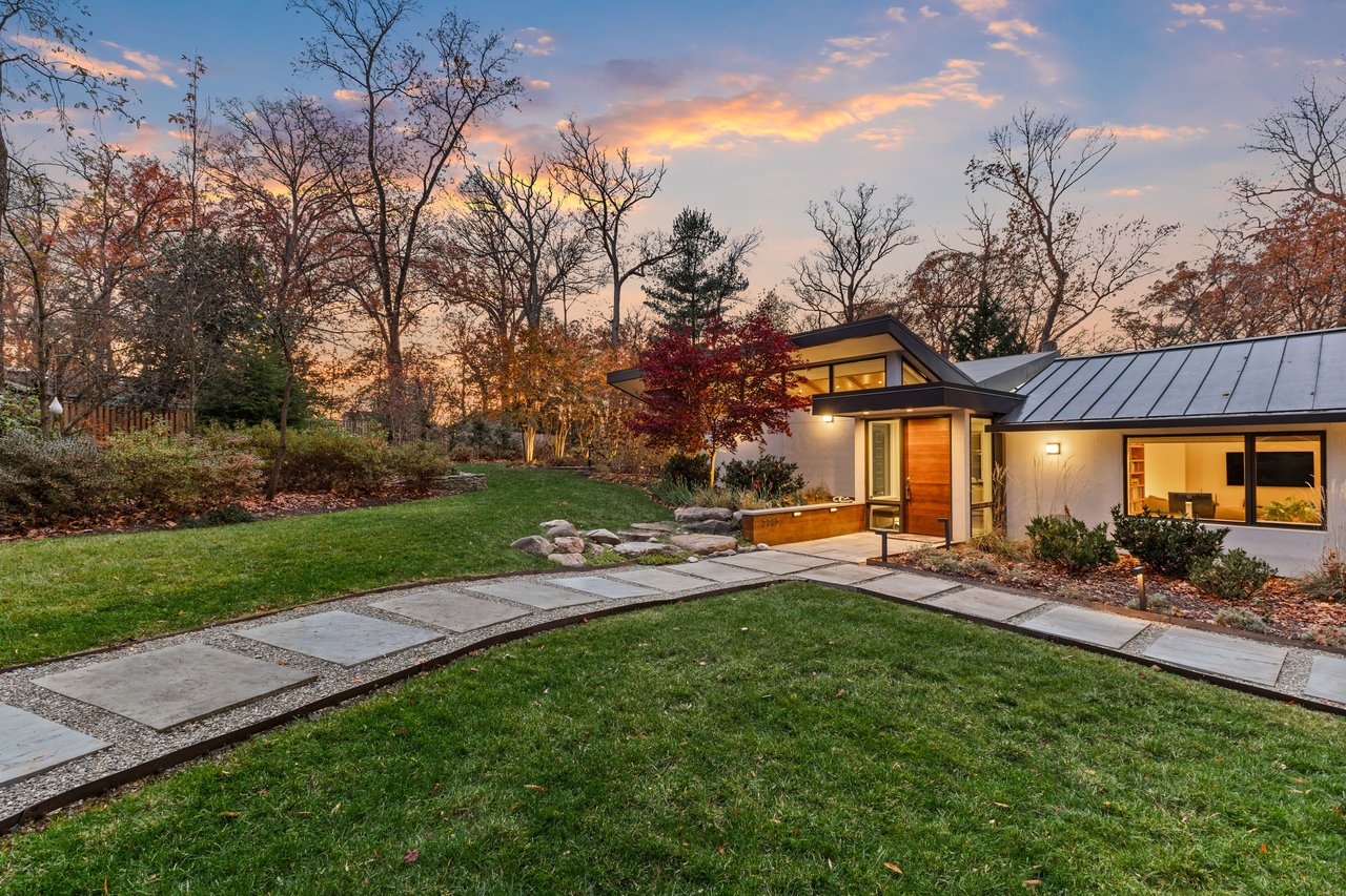 Winner of the Home and Design Grand Award for Curb Appeal in 2024, this secluded mid-century modern home is like no other. Designed by award winning architect Ben Ames, this home is defined by its striking dual butterfly roofs, walls of floor to ceiling glass and seamless integration with nature. Built to commercial standards with metal frame, concrete slab, commercial grade windows and sliding doors by LaCANTINA Systems. Every line, every material and every texture has a purpose and a reason that connects the home with its surrounding environment. It’s perfectly sited on a wooded 0.82-acre lot offering a private retreat that harmonizes effortless luxury with timeless elegance. Mature trees and professionally designed gardens frame this serene sanctuary, complete with meandering pathways, cedar-clad retaining walls, and glowing landscape lighting.