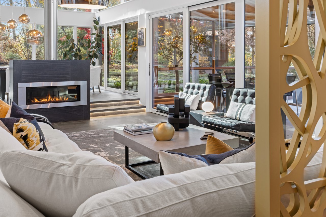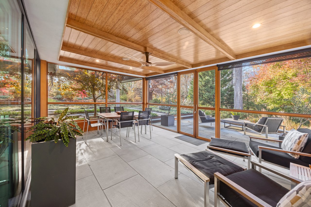 Outside, the home has multiple terraces—each perfectly oriented to the light, from sunrise to sunset—offer stunning spaces to relax and entertain. A screened-in porch with radiant floors and a custom pavilion terrace are ideal for year-round enjoyment.
