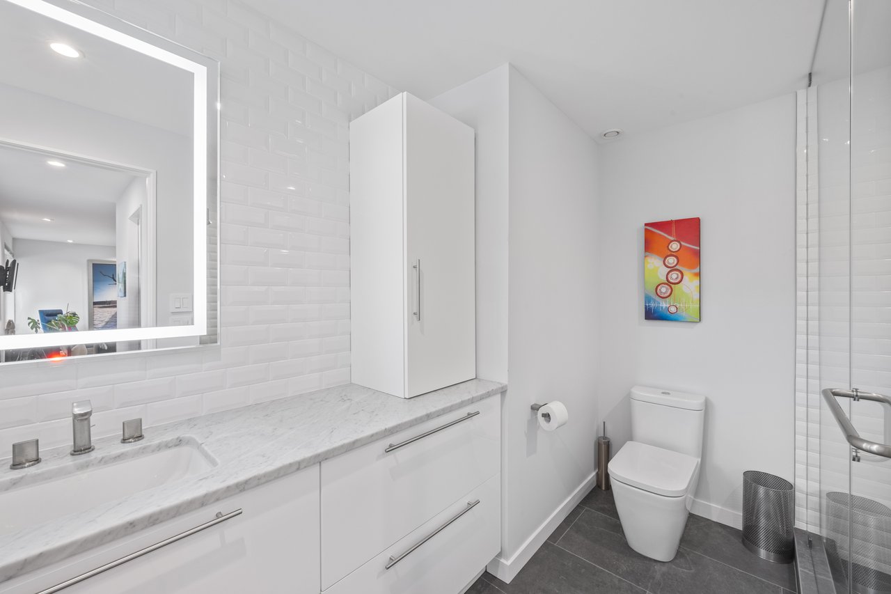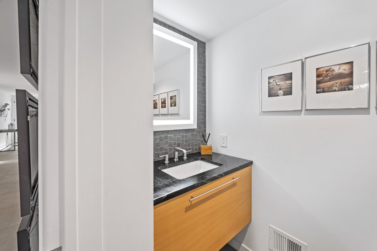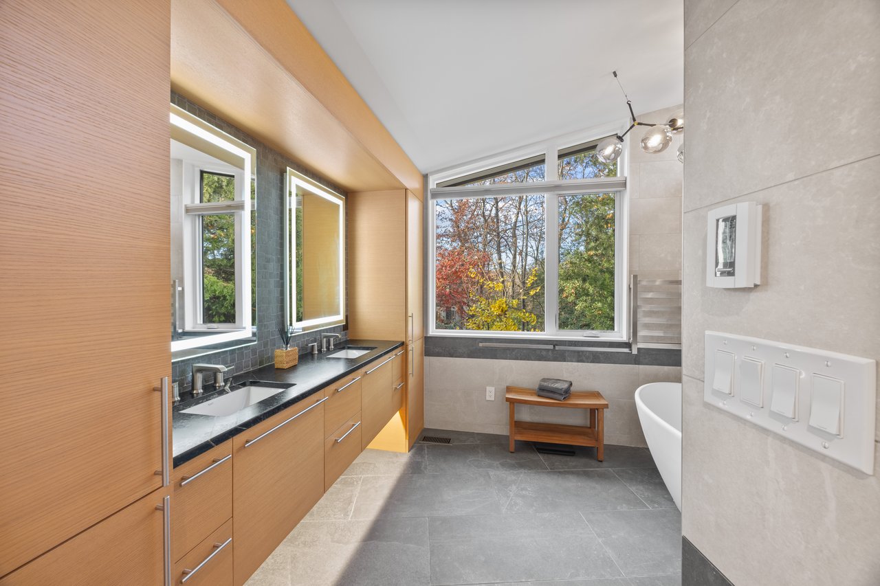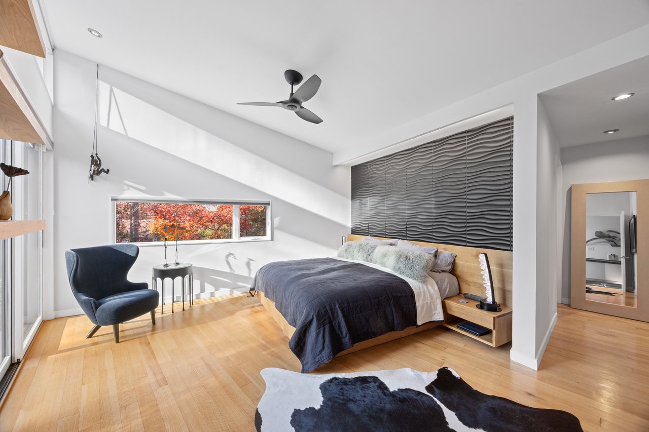 Three ensuite bedrooms provide exceptional comfort, including the serene primary suite, where blackout shades, a steam shower, a radiant-heated floor, and a stone soaking tub evoke the ambiance of a world-class spa.