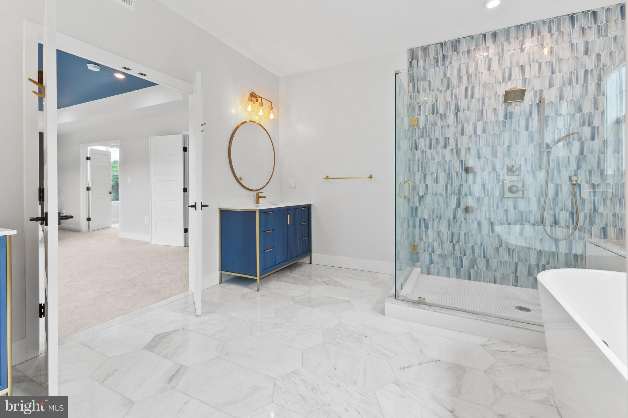 3rd floor features Primary Suite with bedroom sized walk in closet and luxury marble bathroom. Bedroom level laundry room with cabinets, drying rod, and sink. 2 additional large bedrooms share buddy-bath.