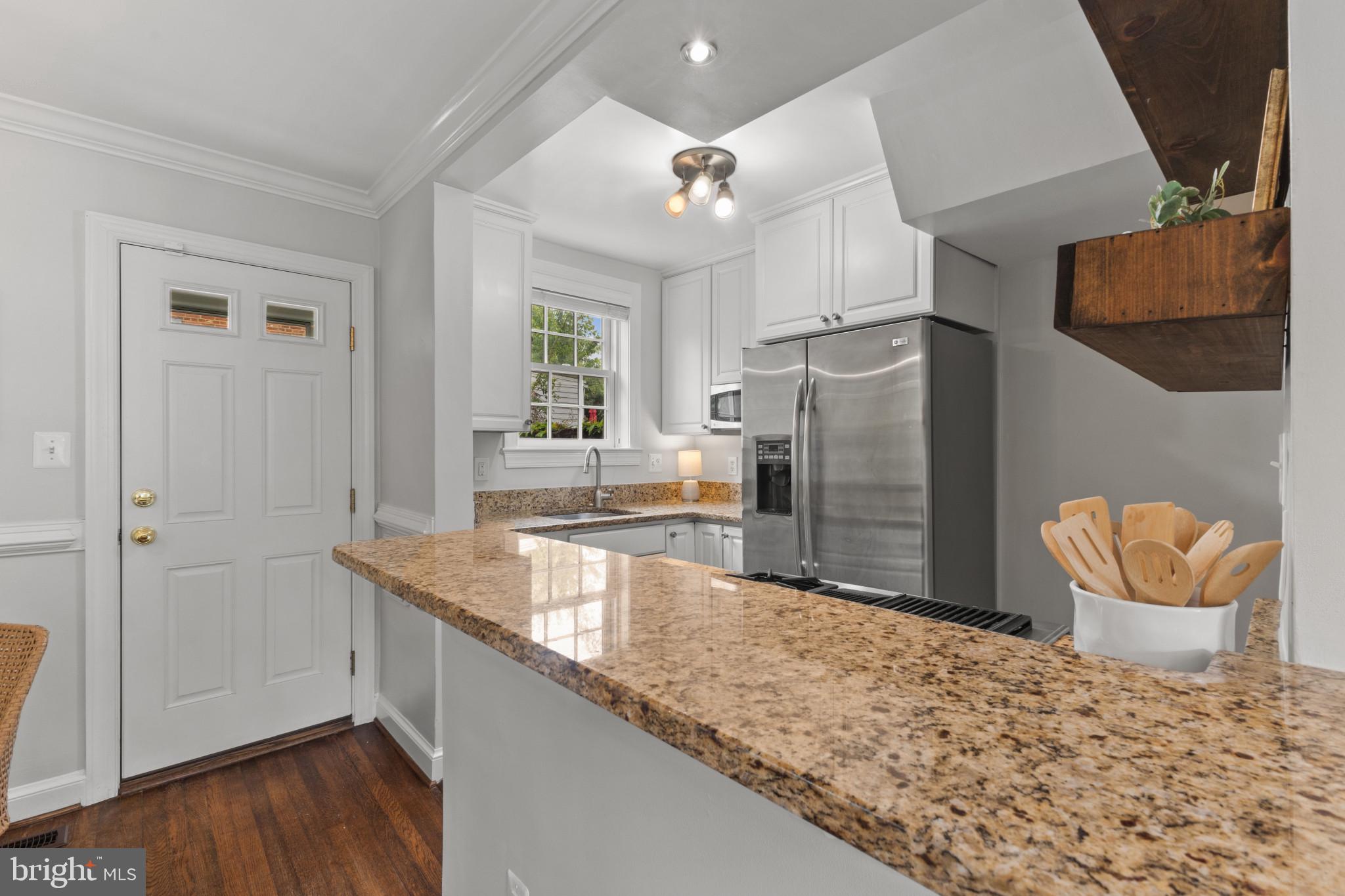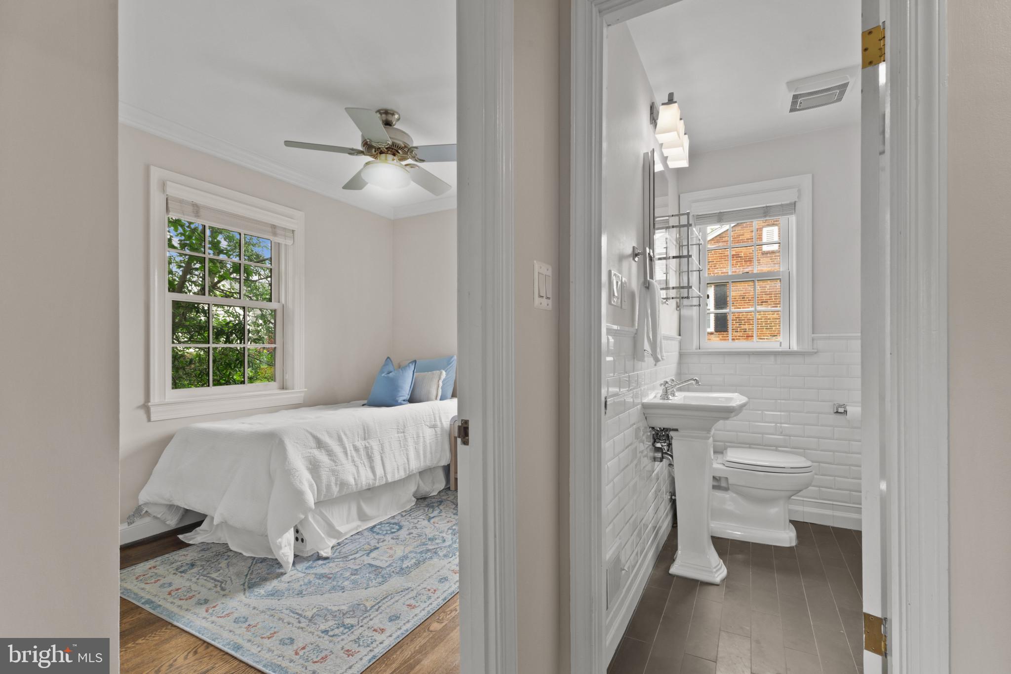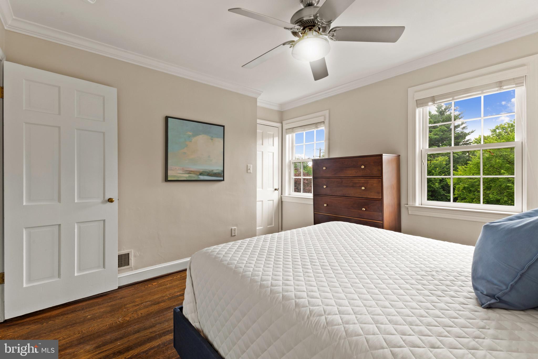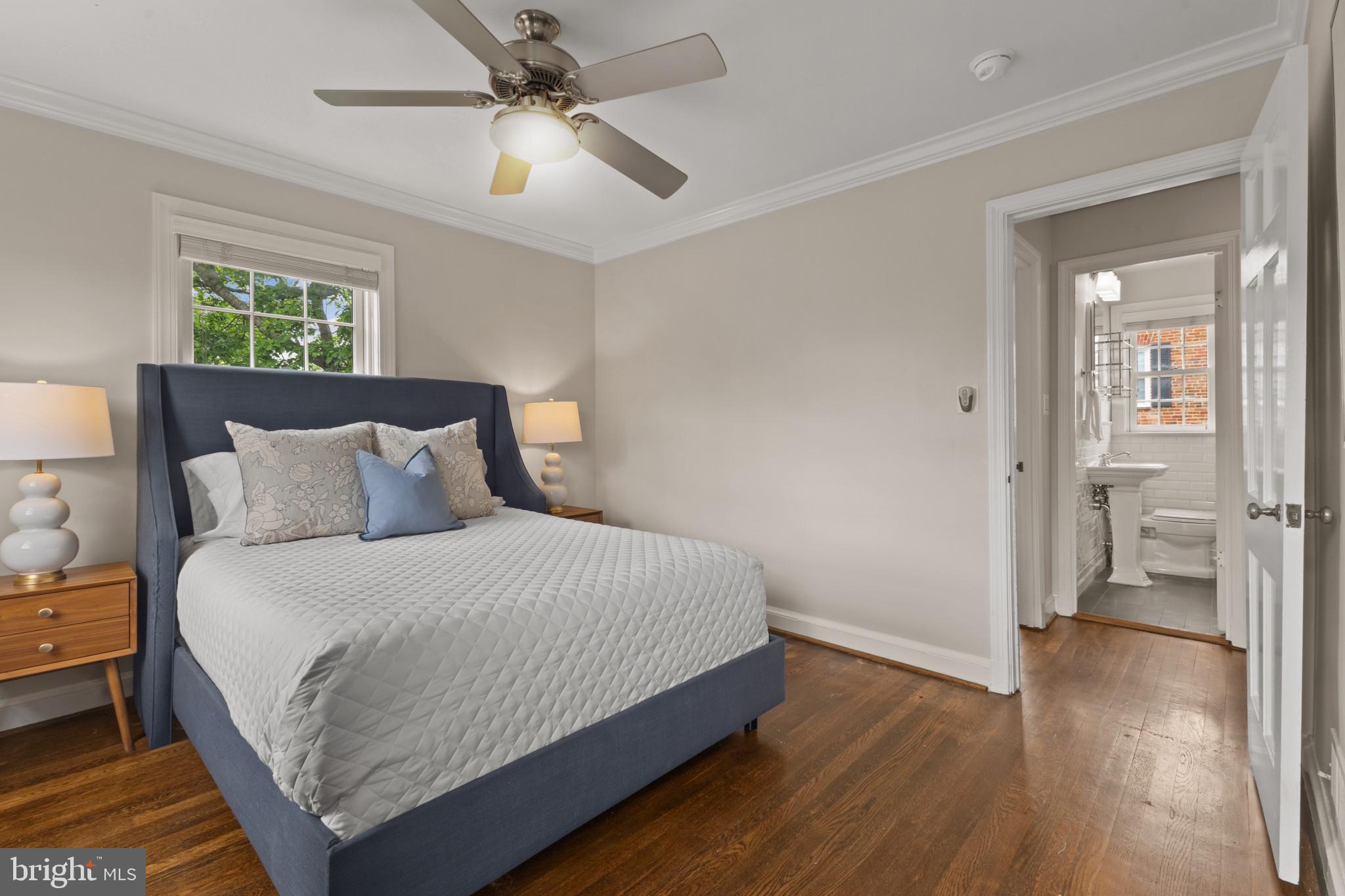 Luxury Living in the Heart of Old Town Alexandria! Welcome to 823 Church Street, where timeless elegance meets unparalleled charm in this rare, all-brick corner-lot townhome nestled in the coveted Southwest quadrant of Old Town Alexandria. Perfectly positioned on an expansive 3,075 sq ft lot--a rarity in this historic neighborhood--this residence offers gracious indoor-outdoor living and lush green space on three sides, all enclosed by a classic picket fence. From the moment you arrive, the home's stately curb appeal, sun-drenched interiors, and beautifully landscaped grounds create a serene, private retreat that feels worlds away--yet is mere steps from the vibrant heartbeat of Old Town. Step inside to discover a beautifully flowing open-concept main level adorned with rich hardwood floors, elegant crown molding, and gorgeous light fixtures. The spacious living and dining areas connect seamlessly with a renovated chef's kitchen featuring granite countertops, stainless steel appliances, a breakfast bar, and tranquil views of the verdant backyard. Doors open to an expansive, fully fenced side and rear garden sanctuary, exquisitely landscaped with mature plantings, hardscaping, and a hard-piped gas grill--ideal for alfresco dining, weekend entertaining, or quiet morning coffee. A spacious rear patio and a private storage shed complete this rare outdoor offering. Upstairs, the sunlit primary suite offers a peaceful escape with garden views, a generous walk-in closet, and a luxuriously renovated bath featuring designer tile, a deep soaking tub, and a glass-enclosed shower. A second bright bedroom offers additional comfort and versatility. The fully finished lower level offers the perfect space for recreation or relaxation, with a large family room, a full bath, a laundry and utility room, and direct walk-out access to the patio--ideal for guests or a cozy media retreat. Additional highlights include: No HOA fees, Plentiful street parking, and 1200+ finished square feet across three thoughtfully designed levels. Prime location just blocks to dining, shopping, scenic parks, walking trails, and easy commuter access via the King Street Metro, GW Parkway, and I-495. This is more than a home--it's an invitation to experience the finest in Old Town living, where historic charm and modern luxury meet in perfect harmony. Offered exclusively at 823 Church Street - where every detail speaks of quality, comfort, and style. Assumable VA Loan at 3.25%!!!