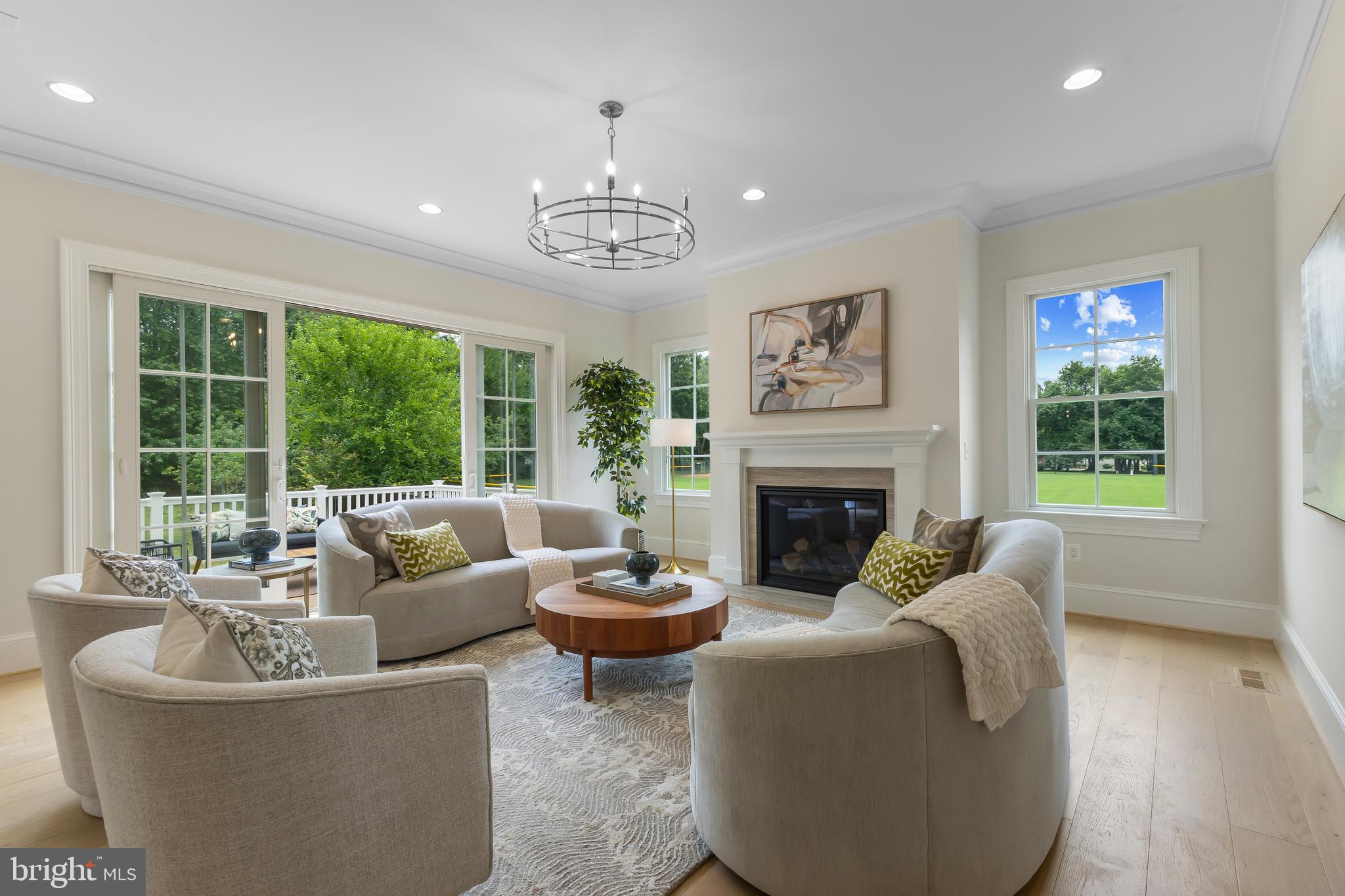 Refined finishes and thoughtful design are evident throughout: St. Clair custom kitchen with inset cabinetry, MSI quartz countertops, GE Monogram appliances, Bridge faucets, custom wood hood, and statement designer lighting. Working pantry with butcher block counters and second full-size refrigerator, plus a separate butler's pantry. 12-foot sliding doors open to the TimberTech Prime+ deck (14' x 18'), perfect for seamless indoor-outdoor entertaining. Elegant millwork including raised panel moldings, 4.5-inch casings, 9-inch baseboards, 9-inch cove crown moldings, and 8-foot solid core 2-panel doors. 7.5-inch wide-plank white oak flooring on main and upper levels, and wood flooring throughout upper level bedrooms. Two staircases with metal balusters, three pocket doors on the main level, and 10-foot ceilings on the main, 9-foot ceilings on upper and lower levels. Andersen 400 Series windows, Carrier 3-zone HVAC, Ecobee thermostats, and Therma-Tru Fiber-Classic Oak Collection front door. Home is elevator-ready with stacked closets on all levels and pre-installed conduit for future install.